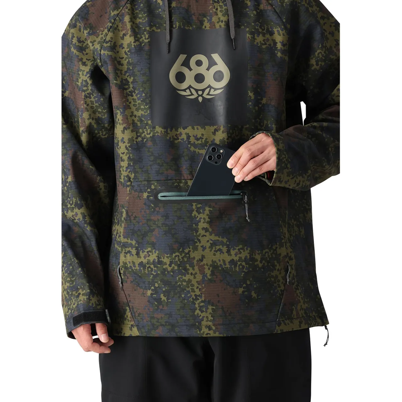 The best of both worlds, the 686 Waterproof Hoodie is made from a 3-layer softshell infiDRY® fabric that’s soft and pliable like a sweatshirt but still delivers 10K/10K waterproof breathable protection. Gone are the days of indecisiveness and mid-day jacket changes. The 686 Waterproof Hoodie doesn’t miss a beat on those days when it’s snowing by morning and bluebird spring-style skiing by afternoon.