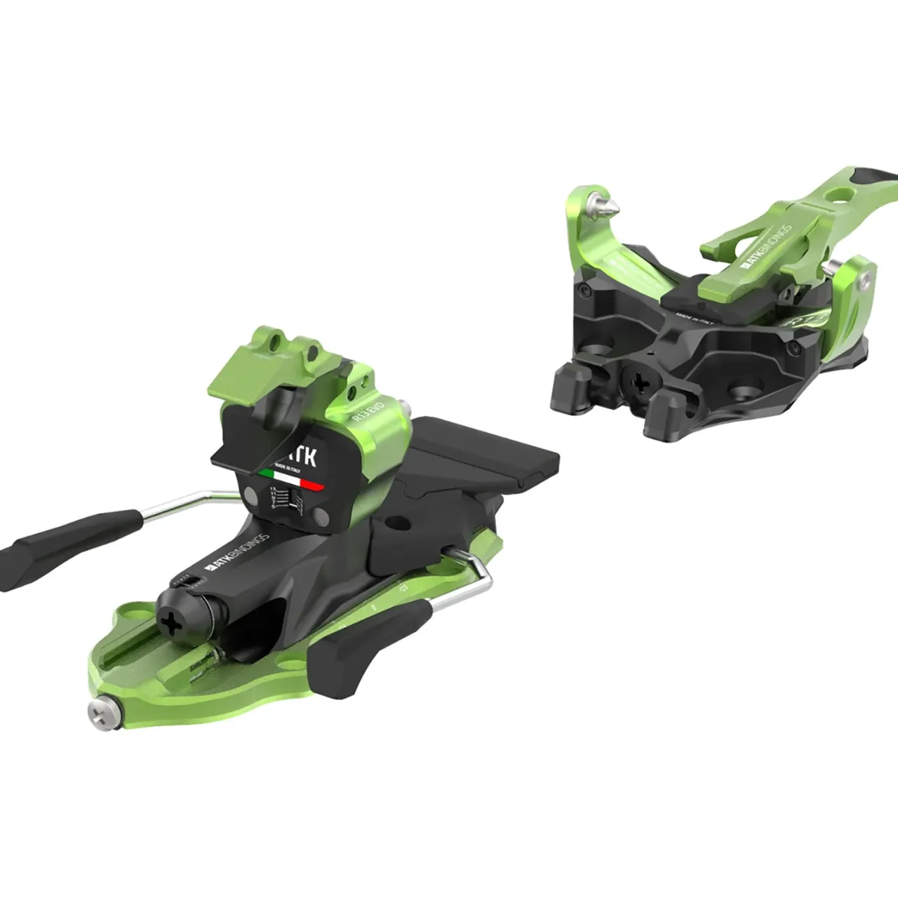 Already having made a name for themselves as “best in class” in the lightweight tech binding category, ATK refuses to rest on their laurels and the new ATK Raider 13 Evo Alpine Touring Ski Bindings exemplify their commitment to improving the breed. The EVO series employs a new toepiece that’s easier to step in to and is adjustable for both locked (touring mode) and unlocked (ski mode) release strength, allowing the user to adjust it perfectly for their weight and skiing style. The new heel employs an “Automatic Braking System®” activated by rotating the heel unit rather than the previous push-in lever. As with other ATK bindings, the ease of step-in and accuracy of release is unparalleled due to the use of their patented Cam Release System® heel pins.