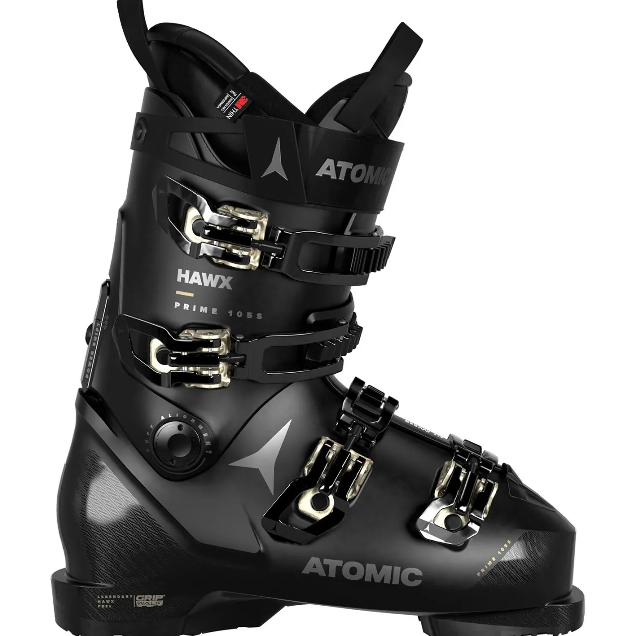 Now with GripWalk, a Mimic Gold liner, and adaptable fit to boot, the Atomic Hawx Prime 105 S W GW Ski Boots are ideal for expert skiers with average width feet. Â The 105 flex is smooth and progressive, providing just-right suspension when the terrain gets choppy, and Prolite construction gives them a seriously light weight you can wear all day without fatigue. Women’s specific cuff design is tuned to work with your anatomy from the outset, but it’s no problem if you need adjustments; Atomic’s industry leading Memory Fit heat molding technology allows for extensive customization in one easy appointment with your bootfitter. Put yourself in the Prime 105 S W GW Ski Boots and see what they can do for your skiing.