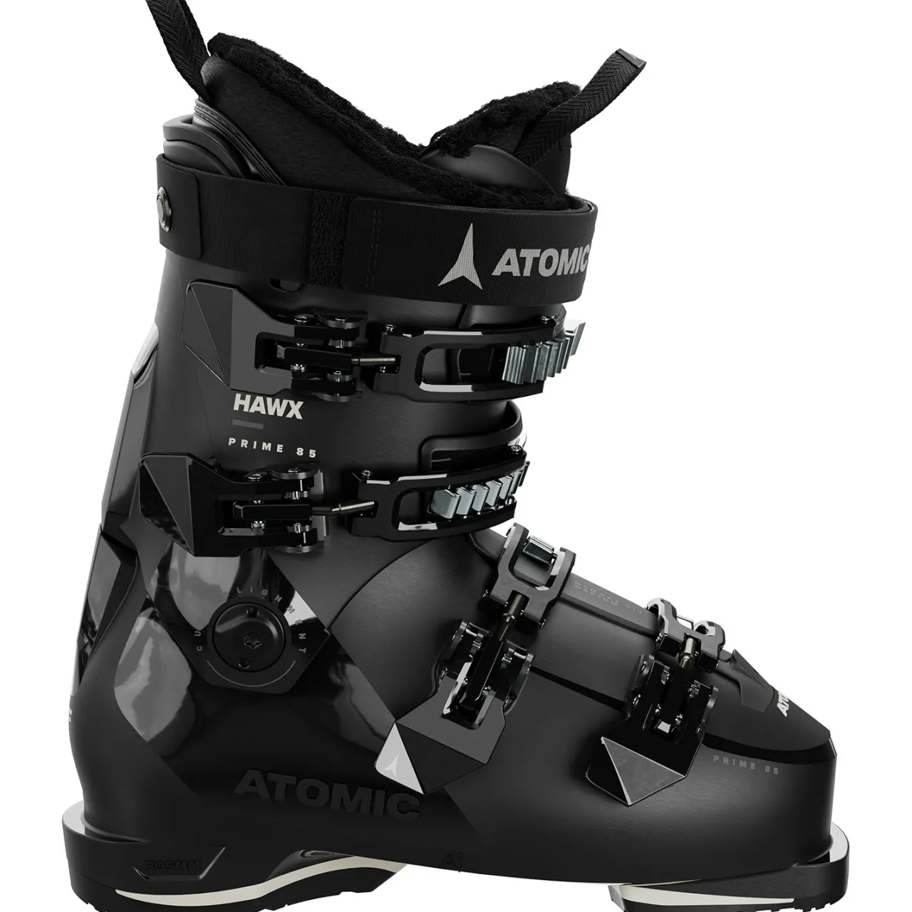 Flex: 85–        A medium stiff flex for balanced power and response for intermediate to advanced skiers.