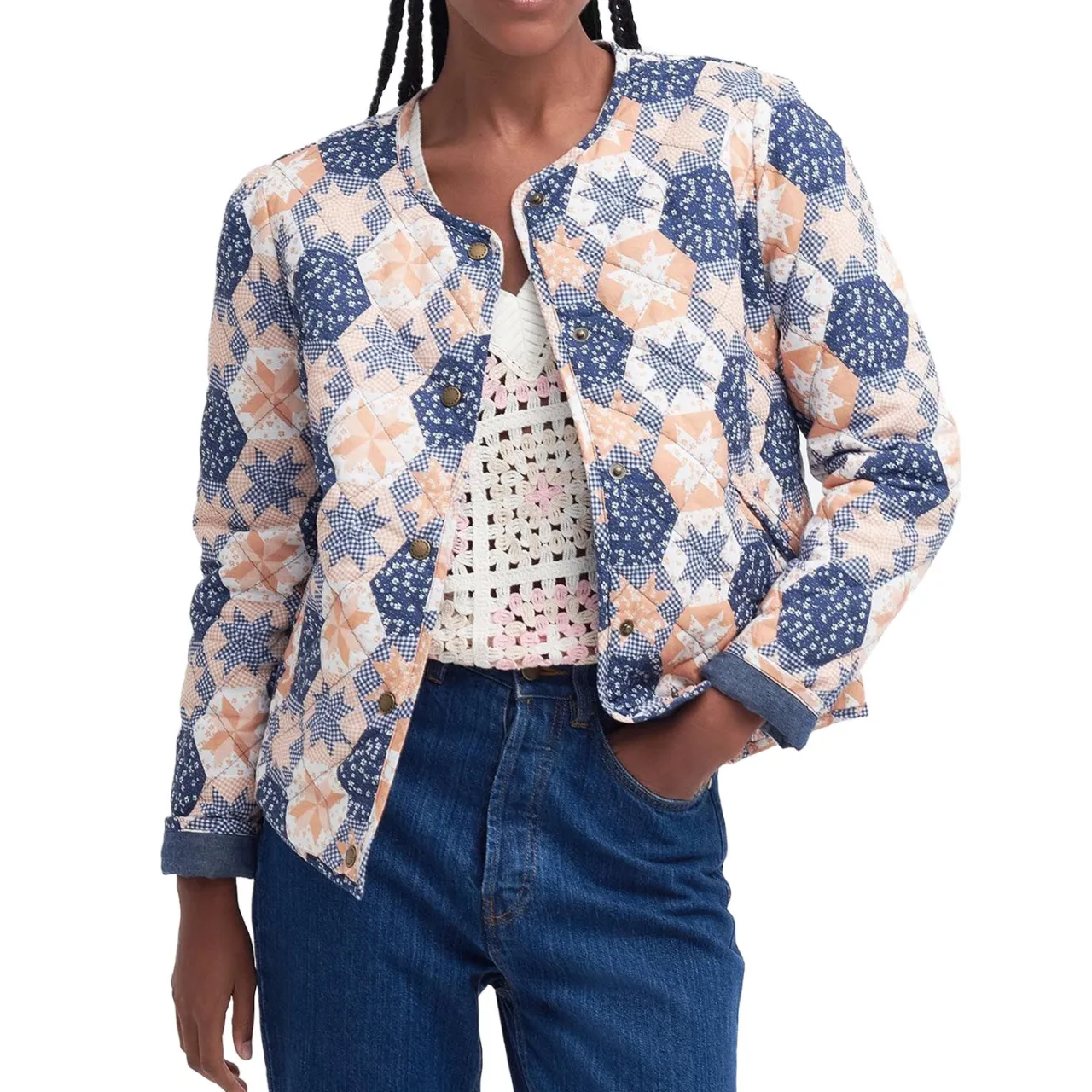 The Barbour Margate Reversible Overshirt features a solid pattern on one side and a classic quilted floral on the other. Filled with a bit of polyester insulation and styled with patchwork perfection, it’s sure to be a staple over tee’s and mild weather outfits for a long time to come.