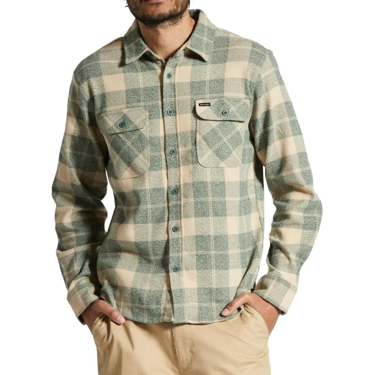 With a hearty weight, a soft peached finish, and a DWR coating to cap things off, the Brixton Bowery Stretch DWR Flannel is one of the most dynamic flannels you’ll ever don.