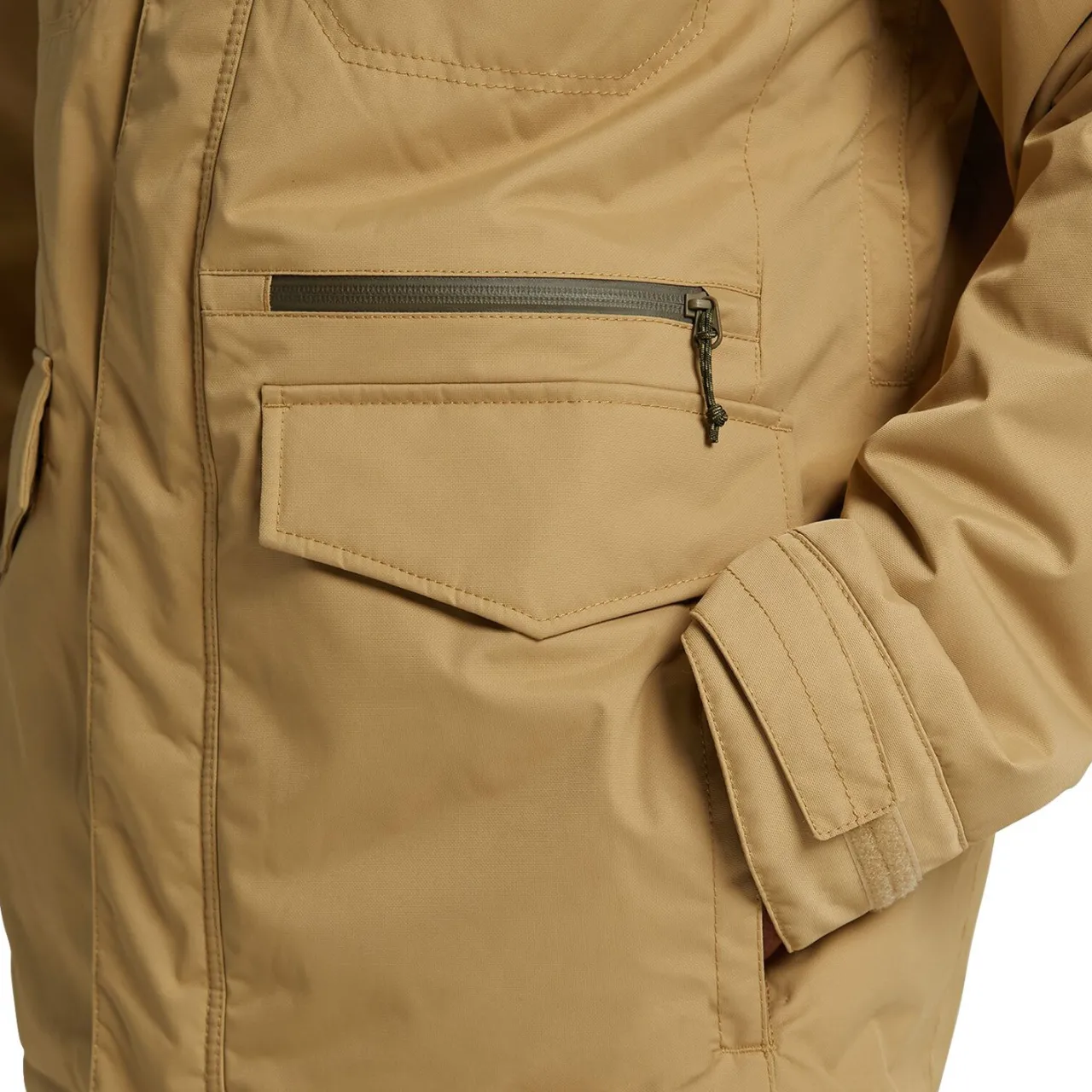 THERMOLITE® Insulation | 80g Body / 60g Sleeves and Hood–        Low-bulk 40% recycled content THERMOLITE® insulation has hollow core fibers that trap warm air, plus a larger surface area to boost the evaporation of moisture. The result is high-performance warmth and dryness – a perfect ingredient for Burton outerwear.