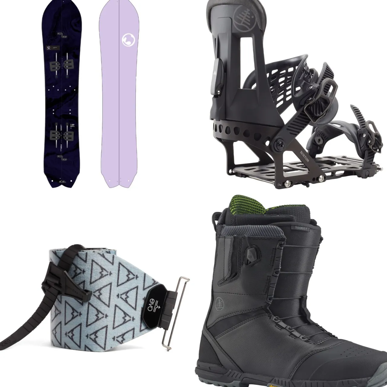 Burton Fish 3D Splitboard + Hitchhiker Splitboard Bindings + evo x Pomoca Pro Glide Splitboard Skins + Tourist Snowboard Boots 2025- Splitboard Packages|Backcountry Snowboarding