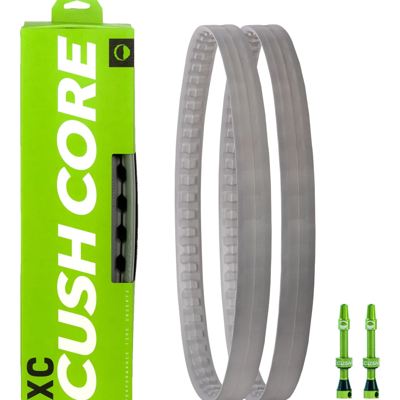 Includes–        Two inserts, Two 44mm tubeless Cush Core Presta valves, valve core remover, installation instructions, and rim stickers.
