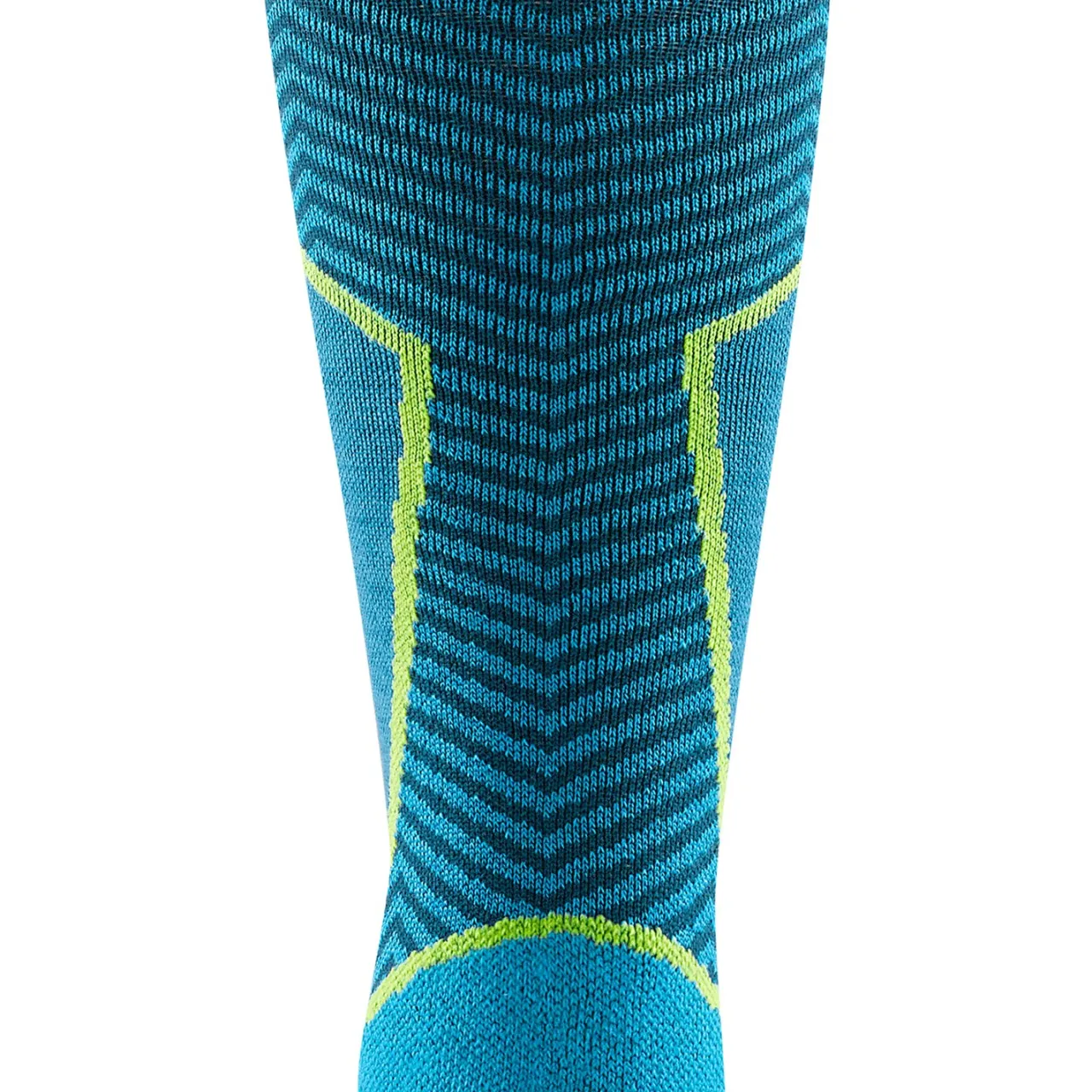 Cushion Underfoot + Shin Pad–        These tall cushioned socks have warm terry loops underfoot and a special shin pad designed to protect legs from ski and snowboard boot pressure.