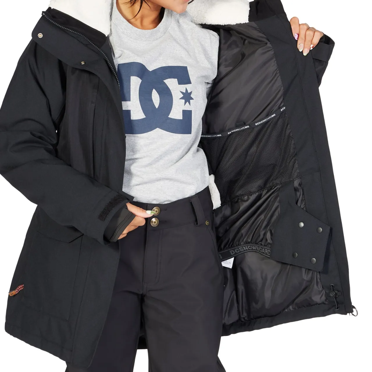 See the world in your DC Panoramic Parka, a two layer snowboarding jacket with a fuzzy hood and defense against the weather. Insulation keeps you warm while 15k waterproofing means you can still get out there when it starts to snow. Made with zippered handwarmer pockets, mesh lined vents, and a jacket-to-pant connect system, the slopes never looked so good.