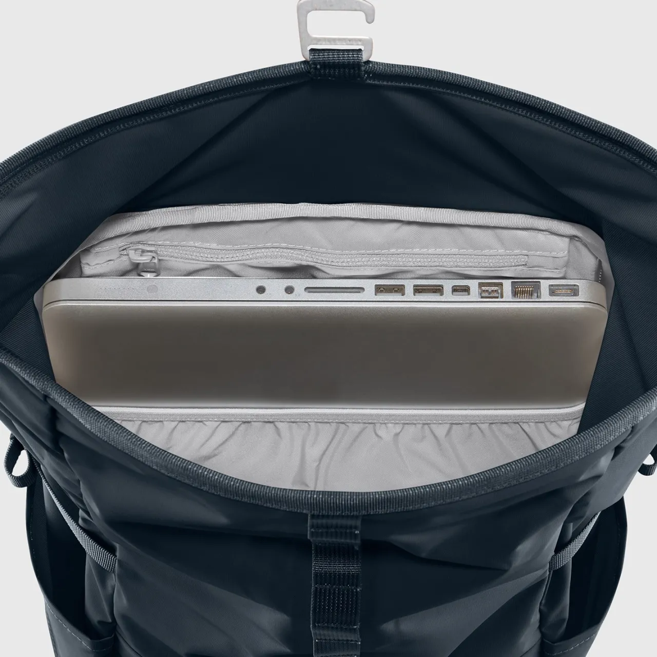 Fold-Over Top Closure with Zipper and Metal Clasp