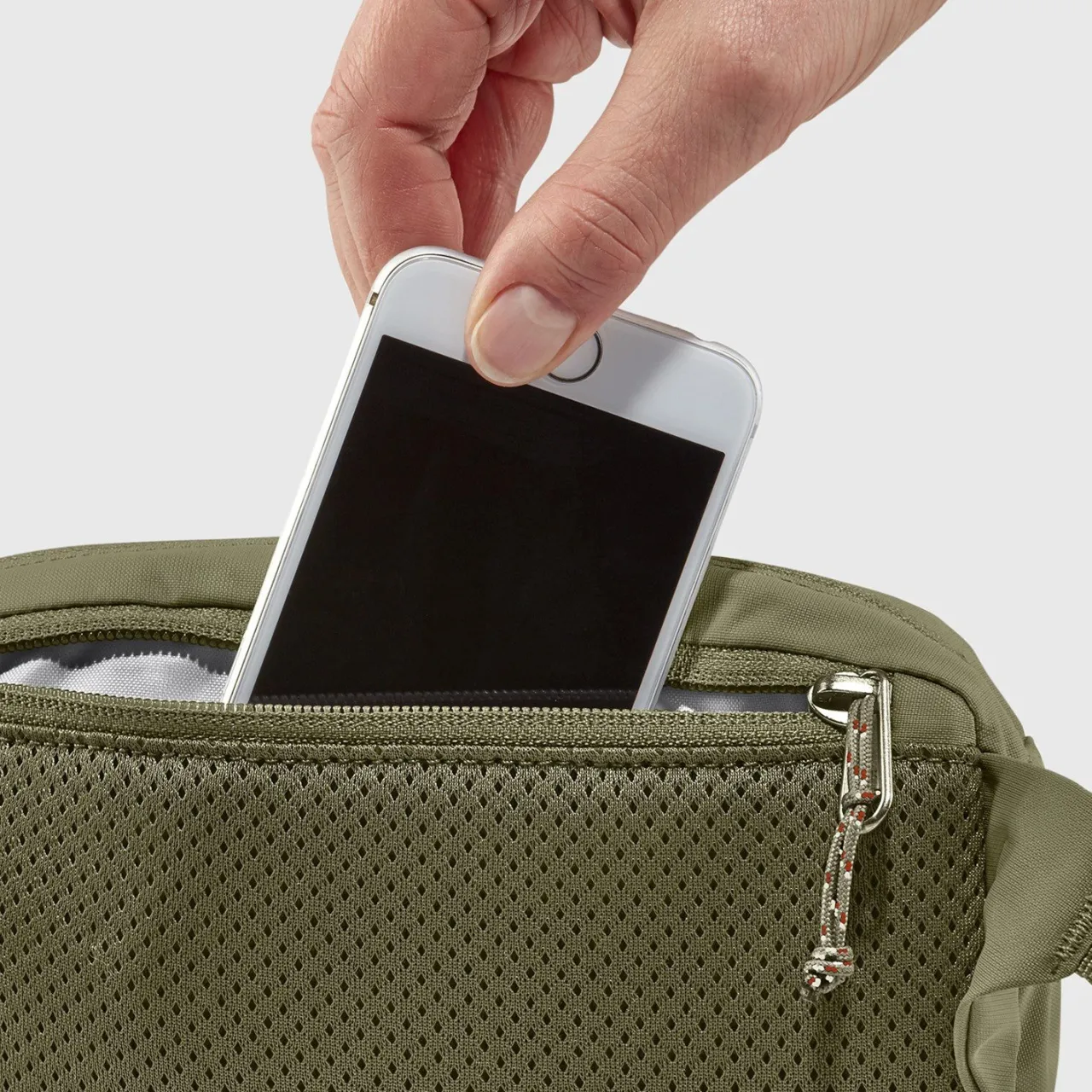 Compact and minimalist, the Fjallraven High Coast Hip Pack keeps the essentials secure when you’re on the go. It features a zippered main compartment, key clip, and water-resistant fabric perfect for light travel adventures that might encounter a little rain.