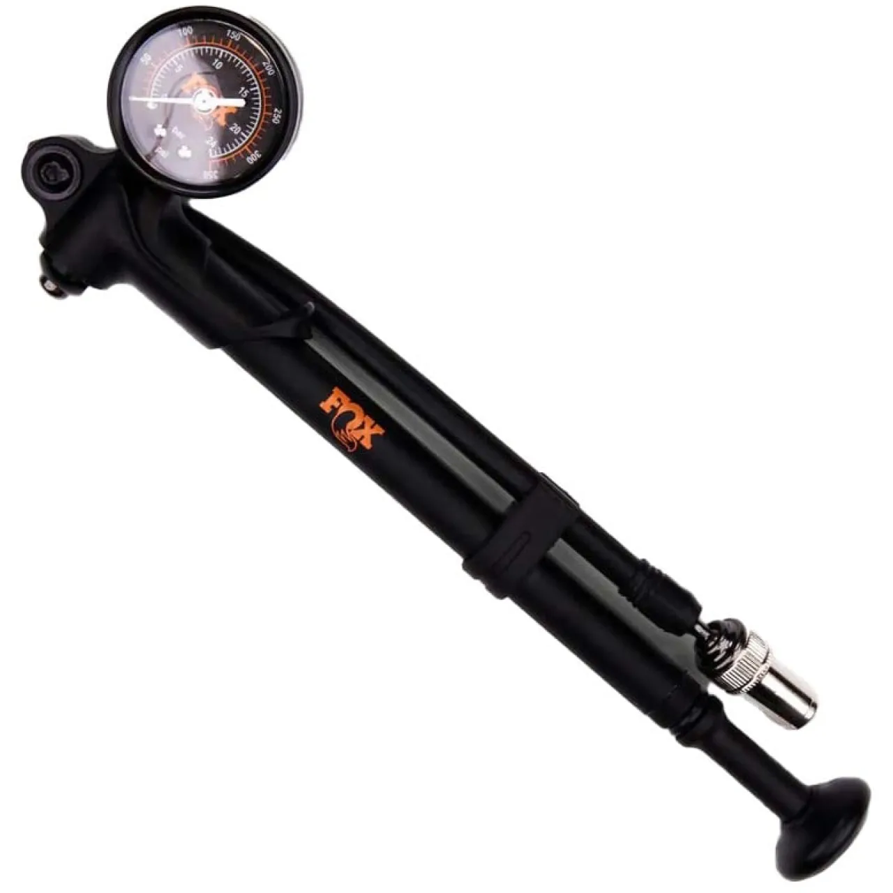 The Fox Racing HP Shock Pump goes all the way up to 350 PSI to ensure every bump is covered. A classic foldable hose and analog pump makes it easy to fit in tight spots and even easier to read.