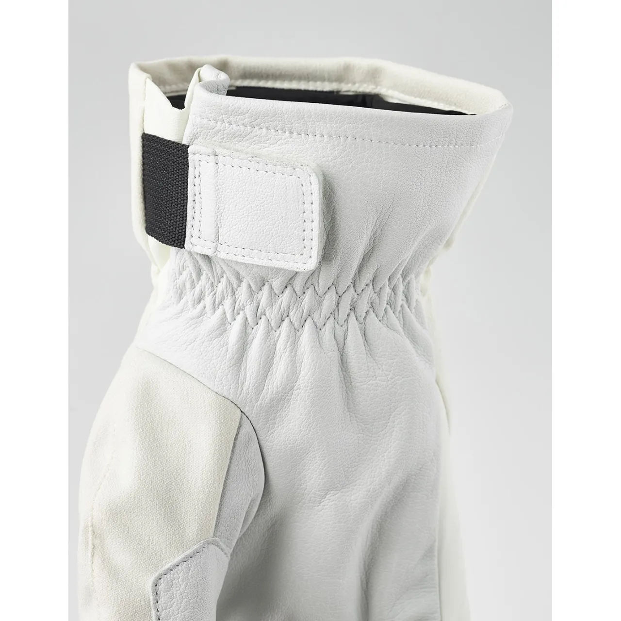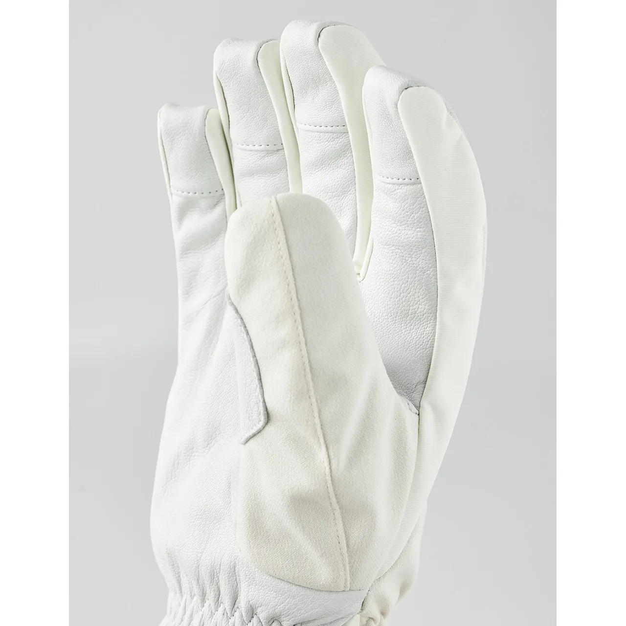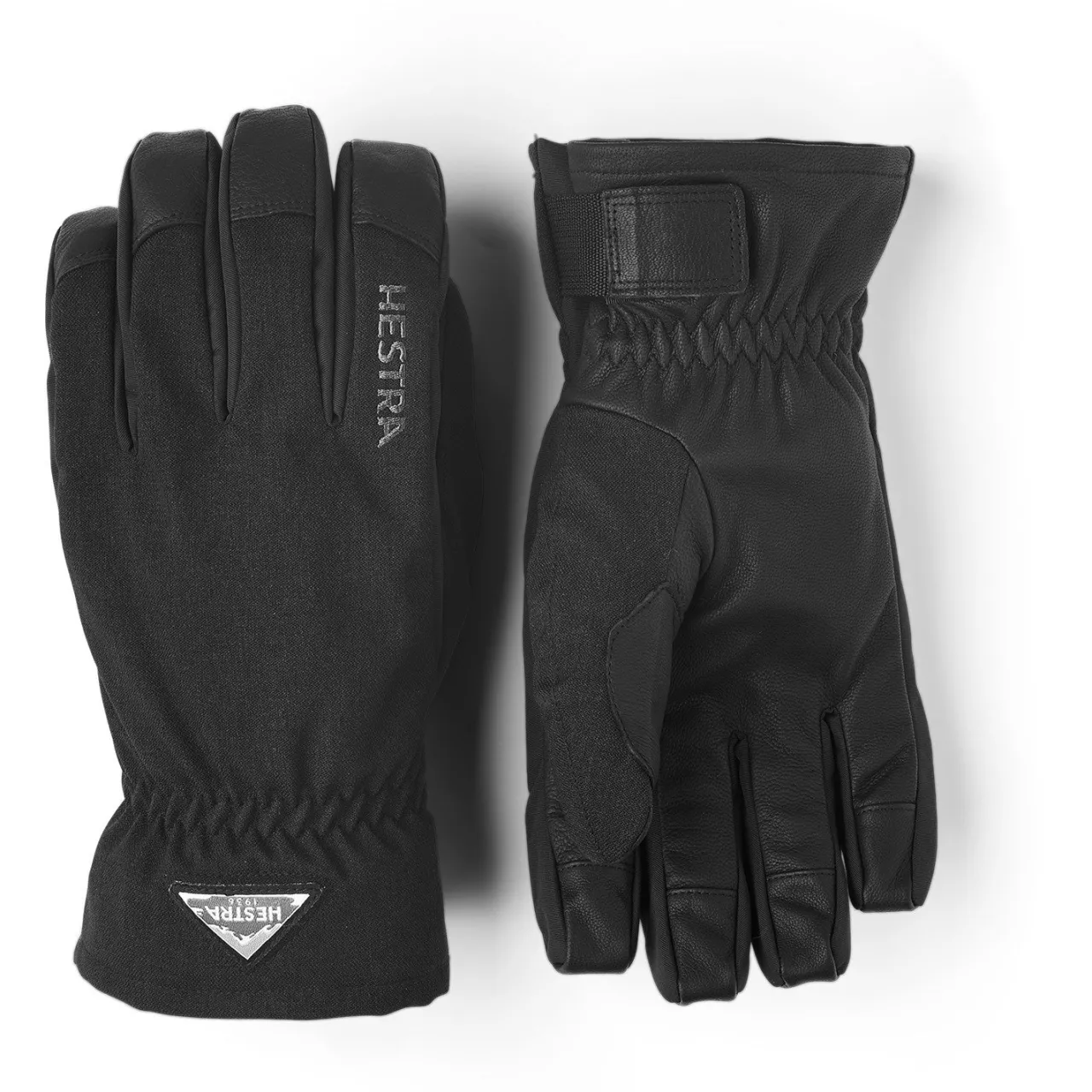 The Hestra Powder Short Gloves feature a detachable microfleece liner and synthetic insulation for moisture-wicking warmth, along with a Velcro-adjustable short cuff for a secure fit under jacket sleeves.