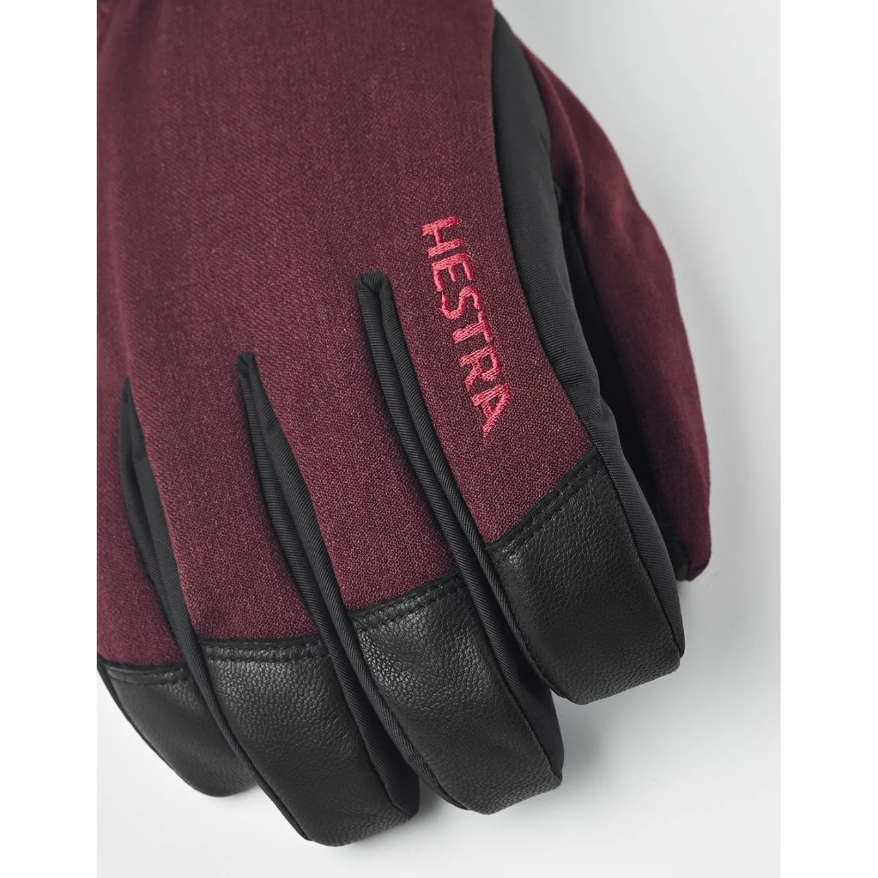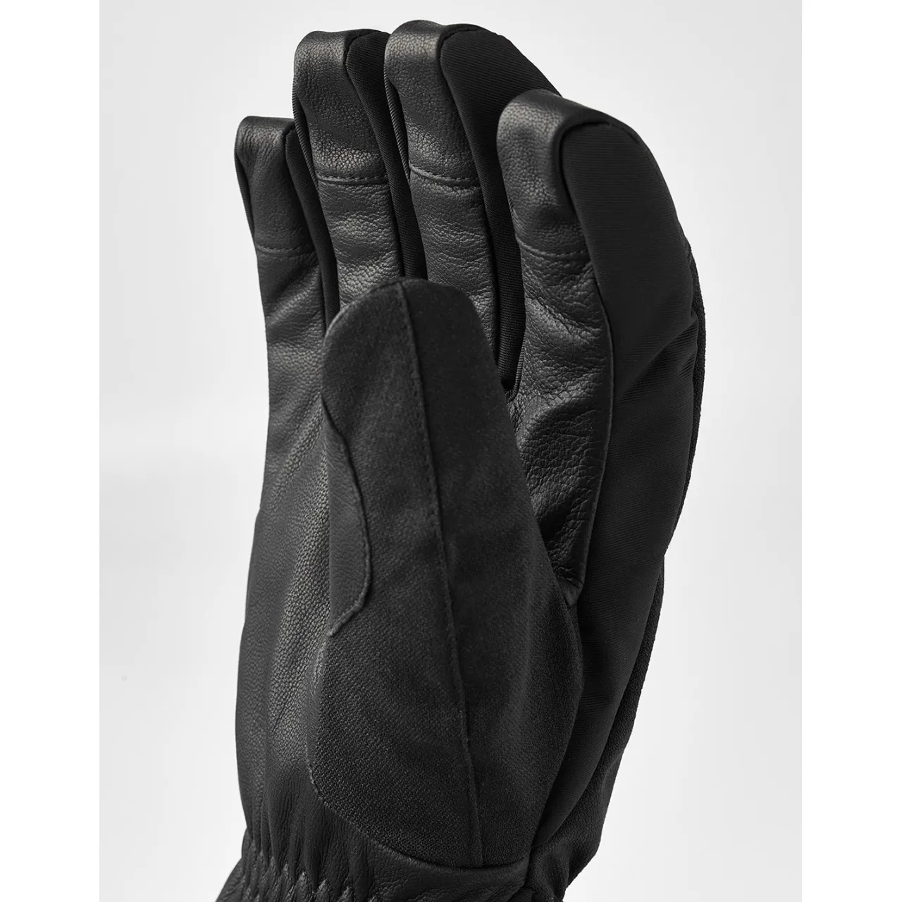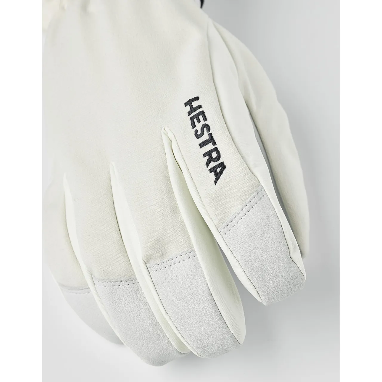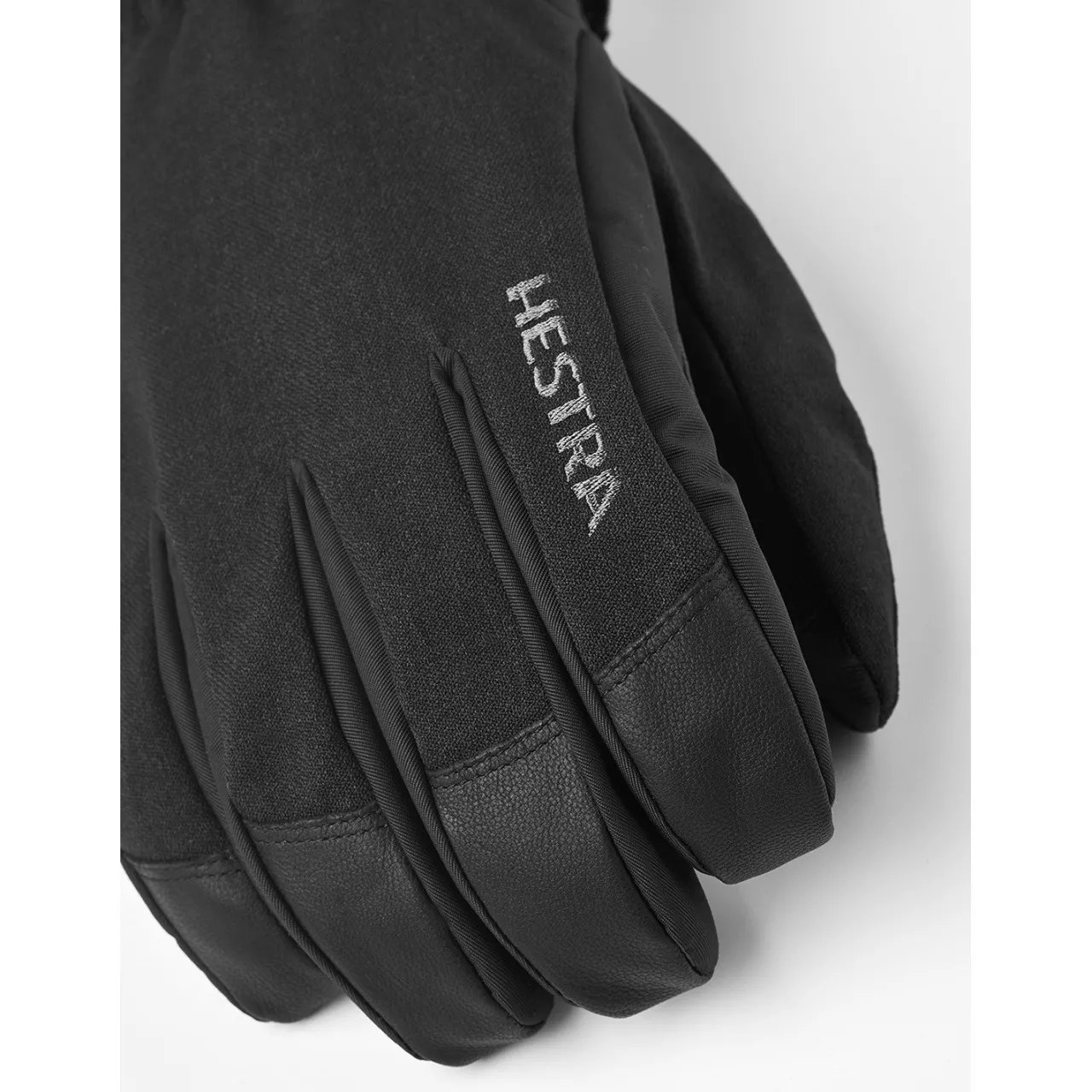 The Hestra Powder Short Gloves feature a detachable microfleece liner and synthetic insulation for moisture-wicking warmth, along with a Velcro-adjustable short cuff for a secure fit under jacket sleeves.