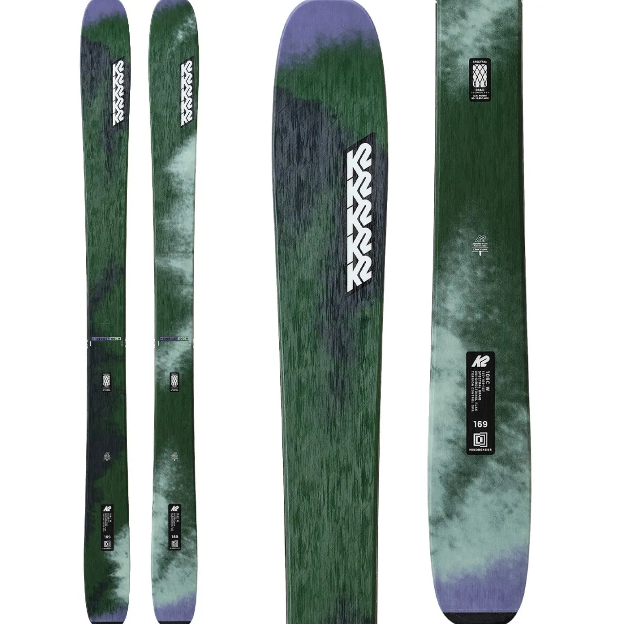 Spectral Braid–        K2’s Patented Spectral Braid is a first of its kind variable angle reinforcement that allows for precision-tuned torsion and flex by altering the fiber orientation along the length of the ski. This makes the ski feel lively, energetic, and remarkably composed.