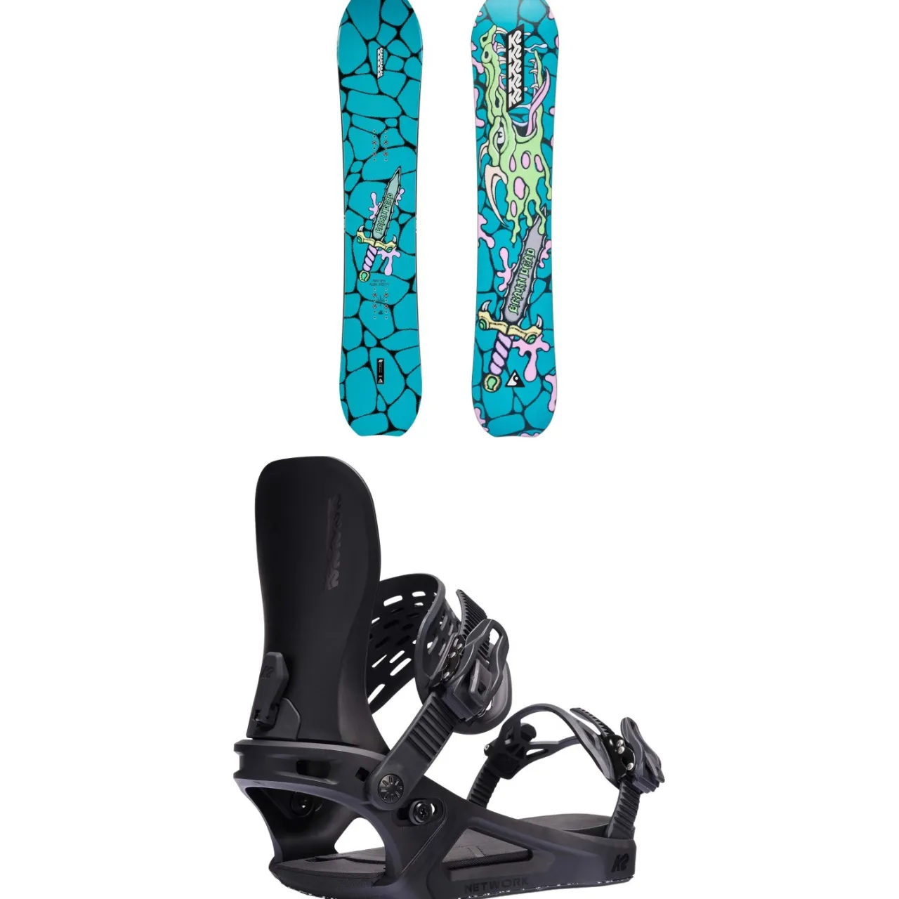 K2 x Brain Dead Passport Snowboard + Network Snowboard Bindings – Women’s 2025- Snowboards With Bindings|Snowboard Packages