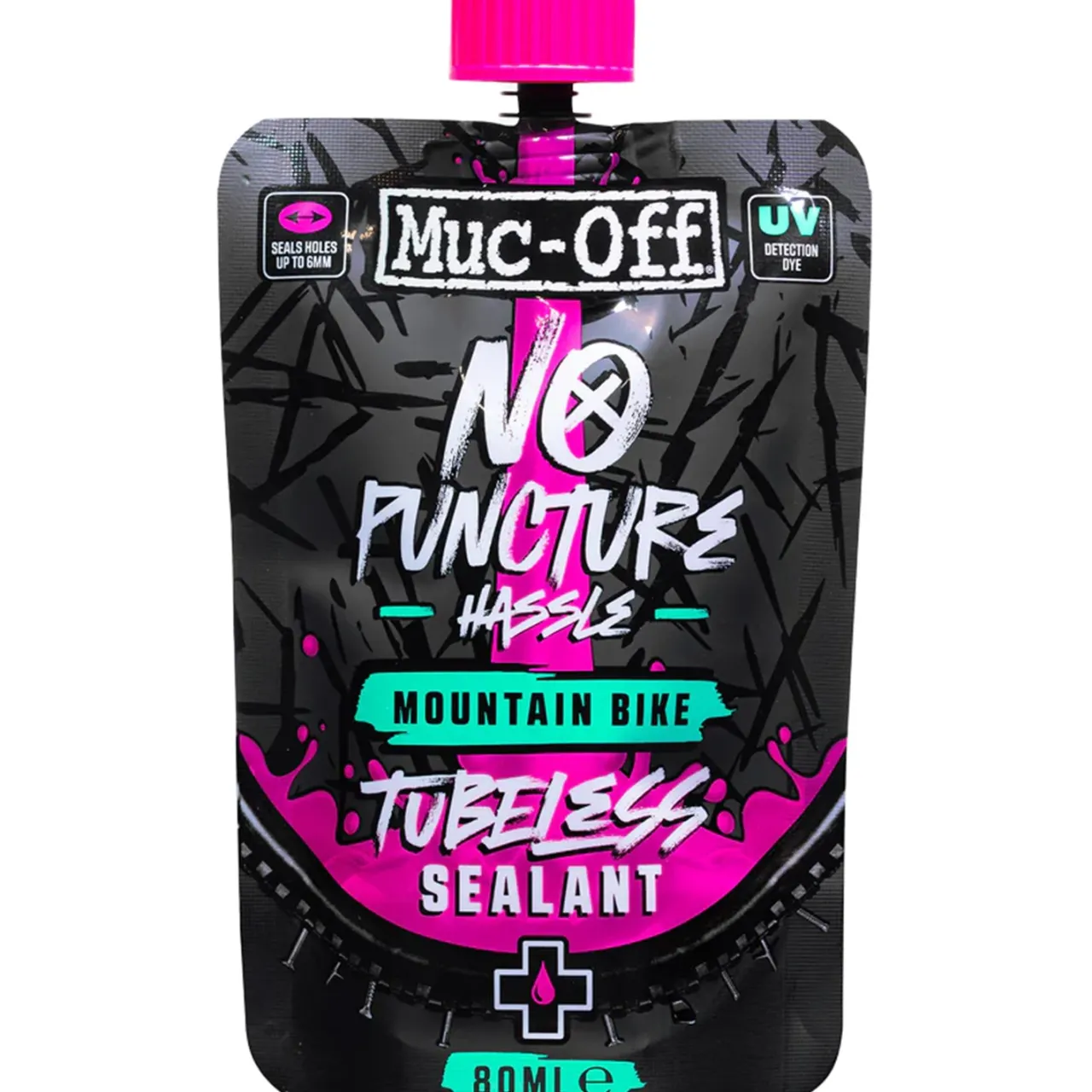 The Muc-Off No Puncture Hassle 80ml Tubeless Sealant fills punctures up to 6mm, so you can set it and forget it the next time a mechanical strikes. Made with UV dye that makes it easy to see the problem, this CO2 compatible, ammonia-free and noncorrosive formula works with any tubeless setup that needs a little TLC.