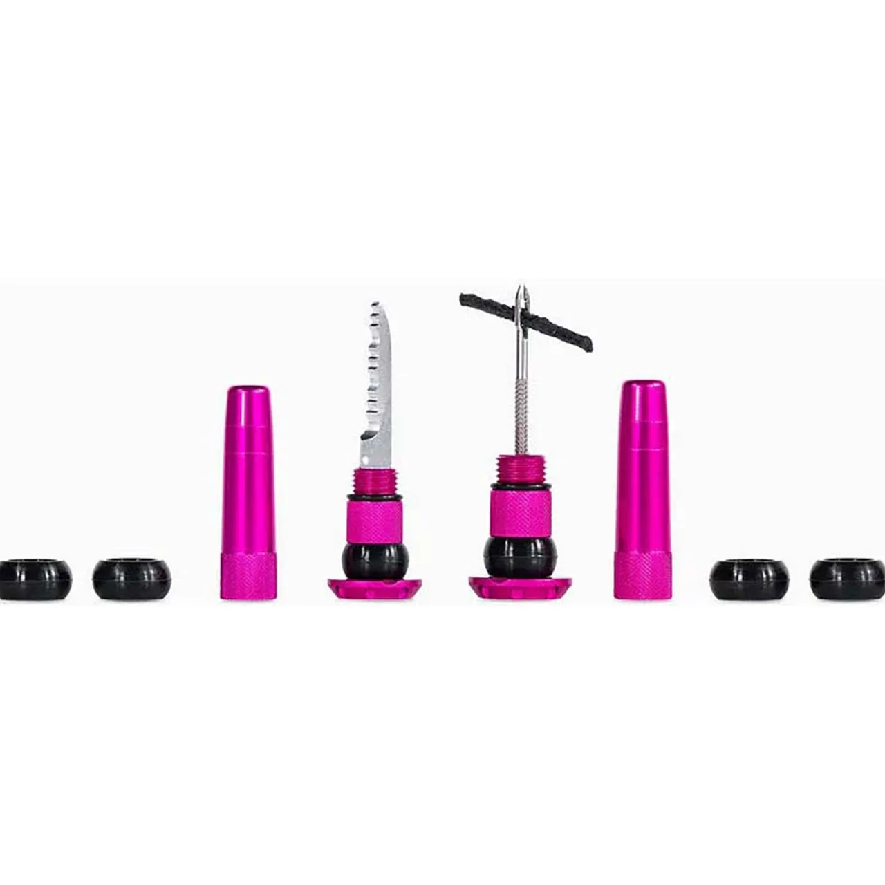 When disastor strikes, the Muc-Off Stealth Tubeless Puncture Plug Kit will get you rolling again. This clever little kit stows out of sight in your handlebar ends, ready to plug your nastiest punctures when called upon.