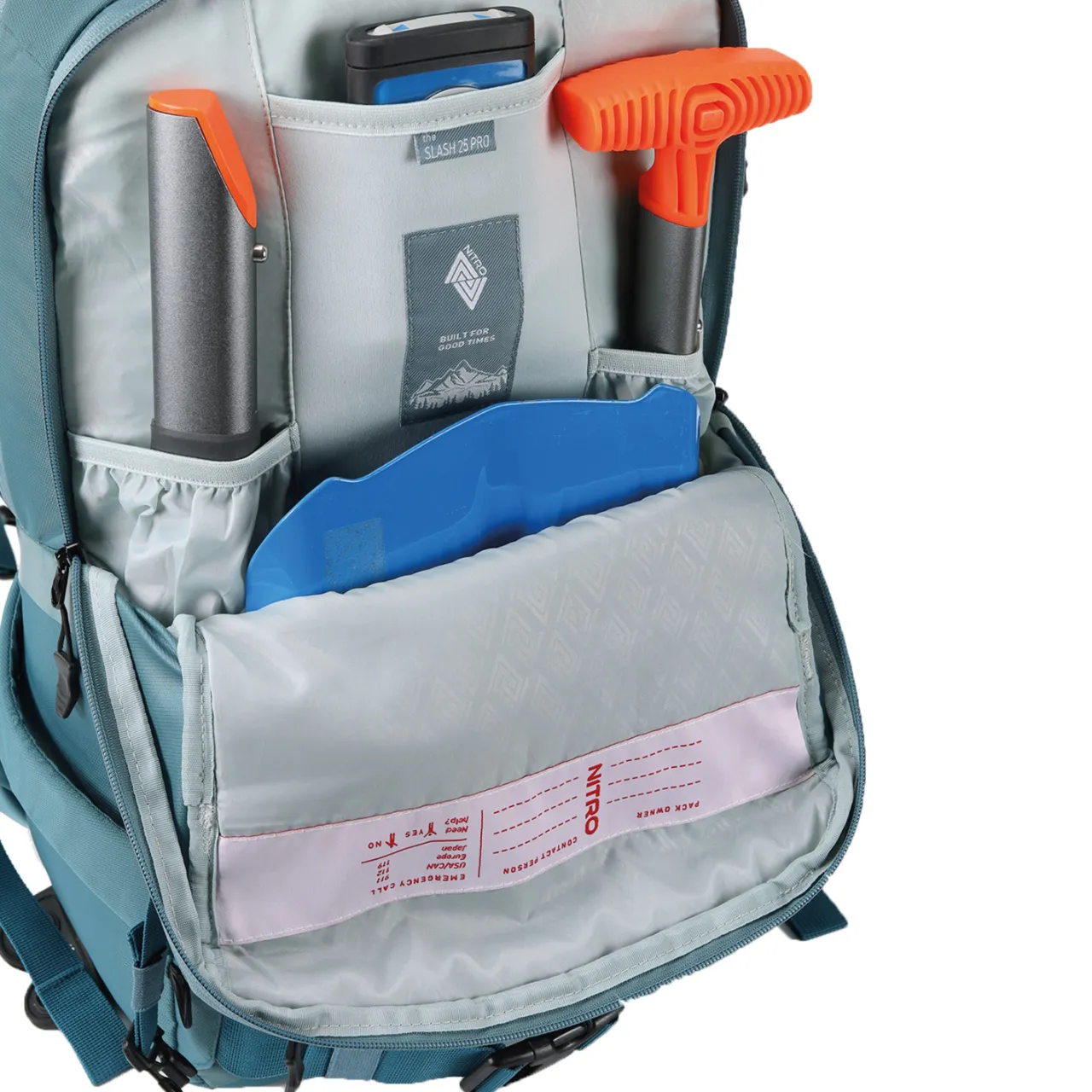Whether your ducking out the sidecountry access gates or embarking on a bigger backcountry splitboard mission, the Nitro Slash 25L Pack is here to haul your avy essentials and beyond. Equipped with organizational pockets for quick access, ski/snowboard carry options for hiking with your splitboard, and a comfortable size-adjustable carry system complete with chest and waist straps.
