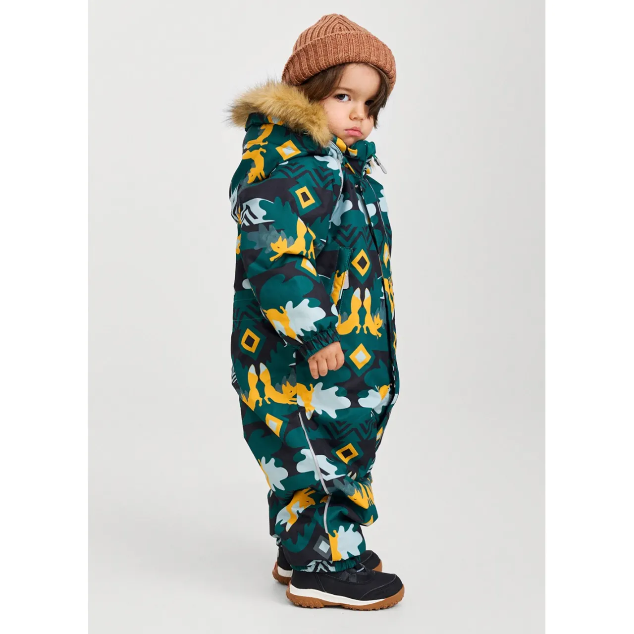 The Reima Lappi Onepiece is a cozy waterproof onezie for your adventurous tot. This award-winning toddler winter overall not only conquered the hearts of Nordic experts but also conquered the elements with its insulated, windproof, and dirt-defying design. Keep your little adventurer warm, dry, and oh-so-fashionable as they conquer the winter wonderland.