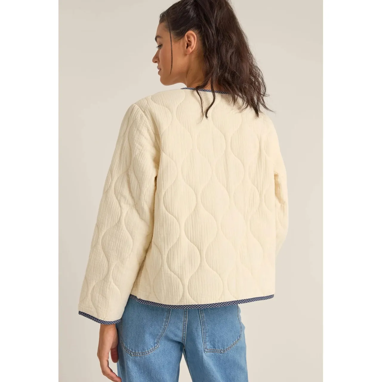 The Rhythm Check Quilted Jacket wraps you in the kind of cozy that makes morning beach walks and evening patio hangs equally inviting. This wide-cut wonder plays with classic quilting and modern details – from its thoughtful V-neck to those clever dual closures – while contrast binding adds just the right amount of sophistication to its laid-back coastal soul.