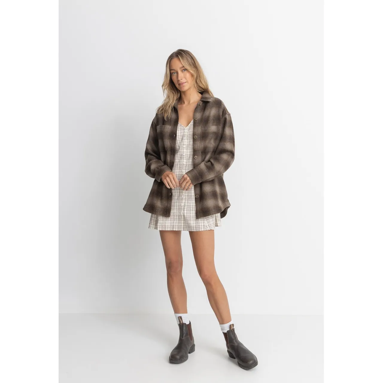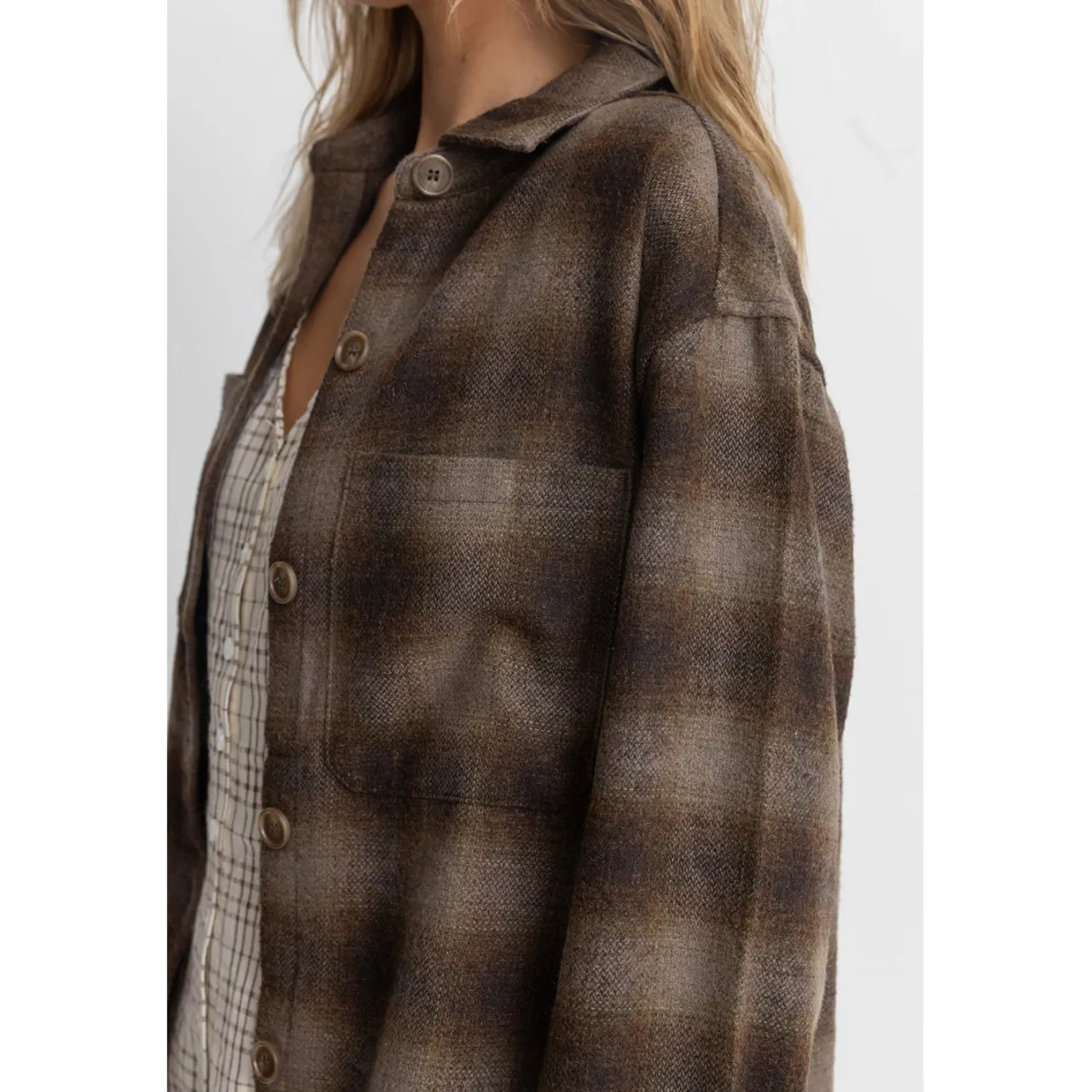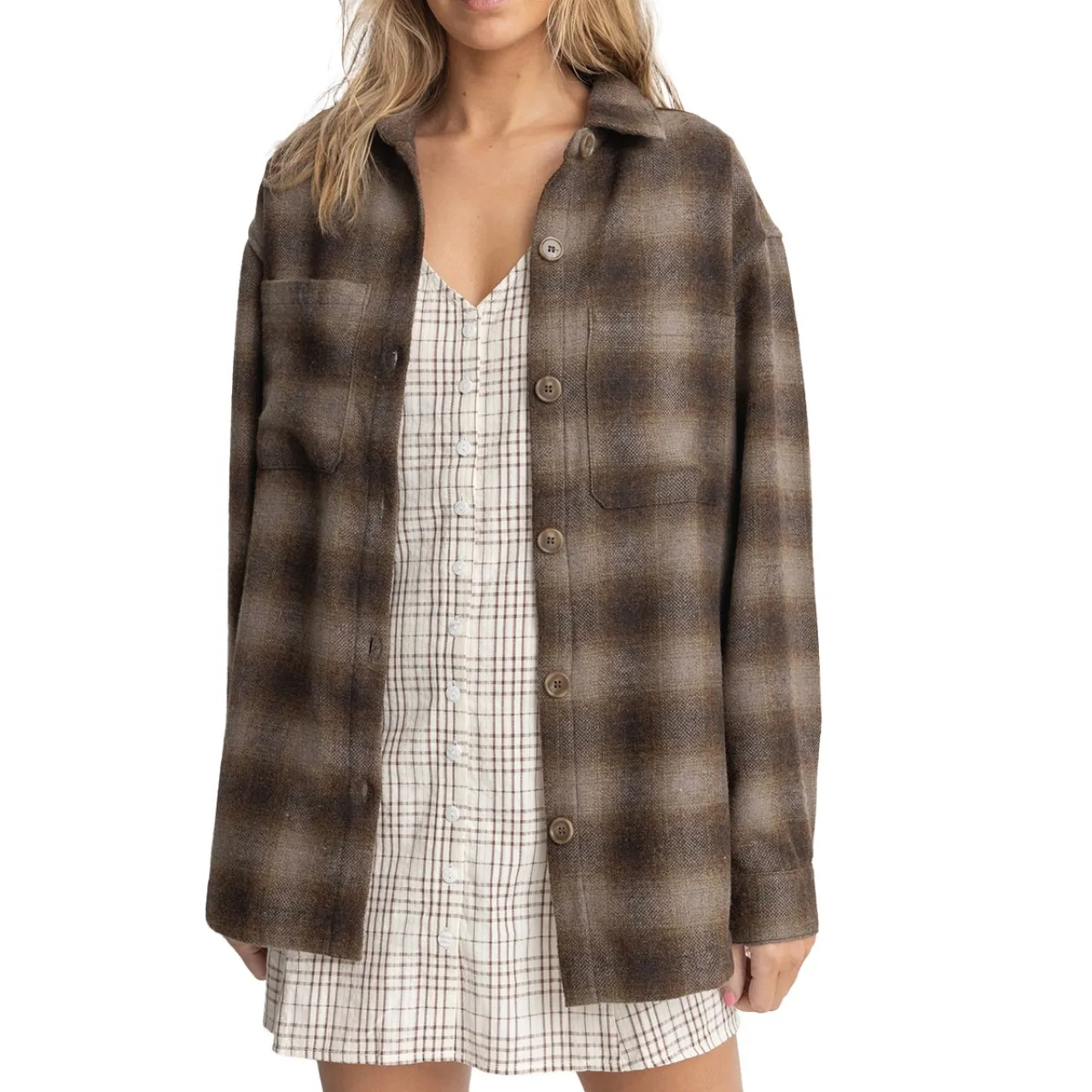 The oversized fit and functional pockets — both side seam and chest — make the Rhythm Mazzy Shacket well suited for both around the house comforts as well as casual outings with friends.