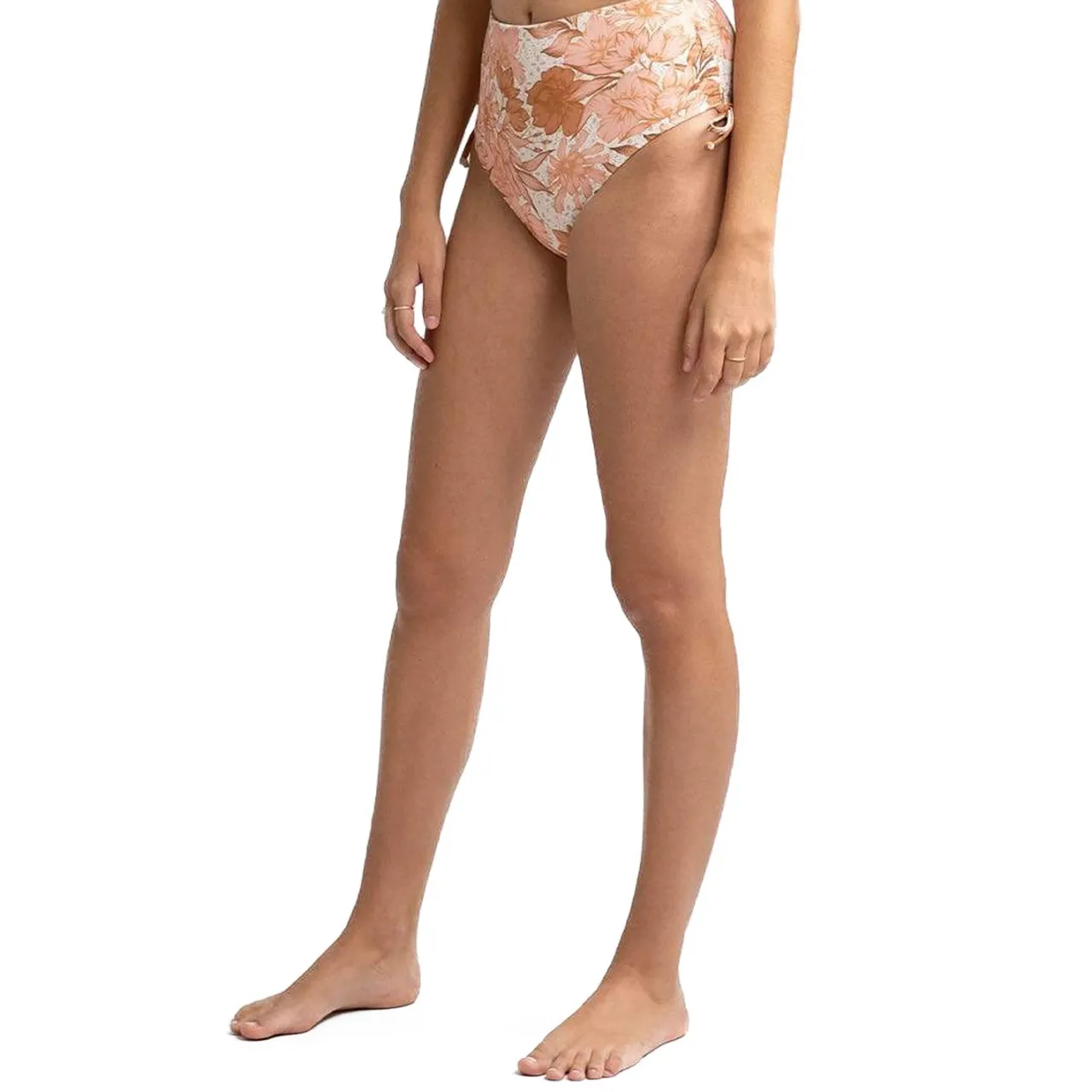 Imagine yourself with warm white sand in the tropics while you wear the Rhythm Ohana High-Waist Tie Side Bikini Bottoms. With moderate bottom coverage and a dependable high waist fit, these bottoms belong in the heat.