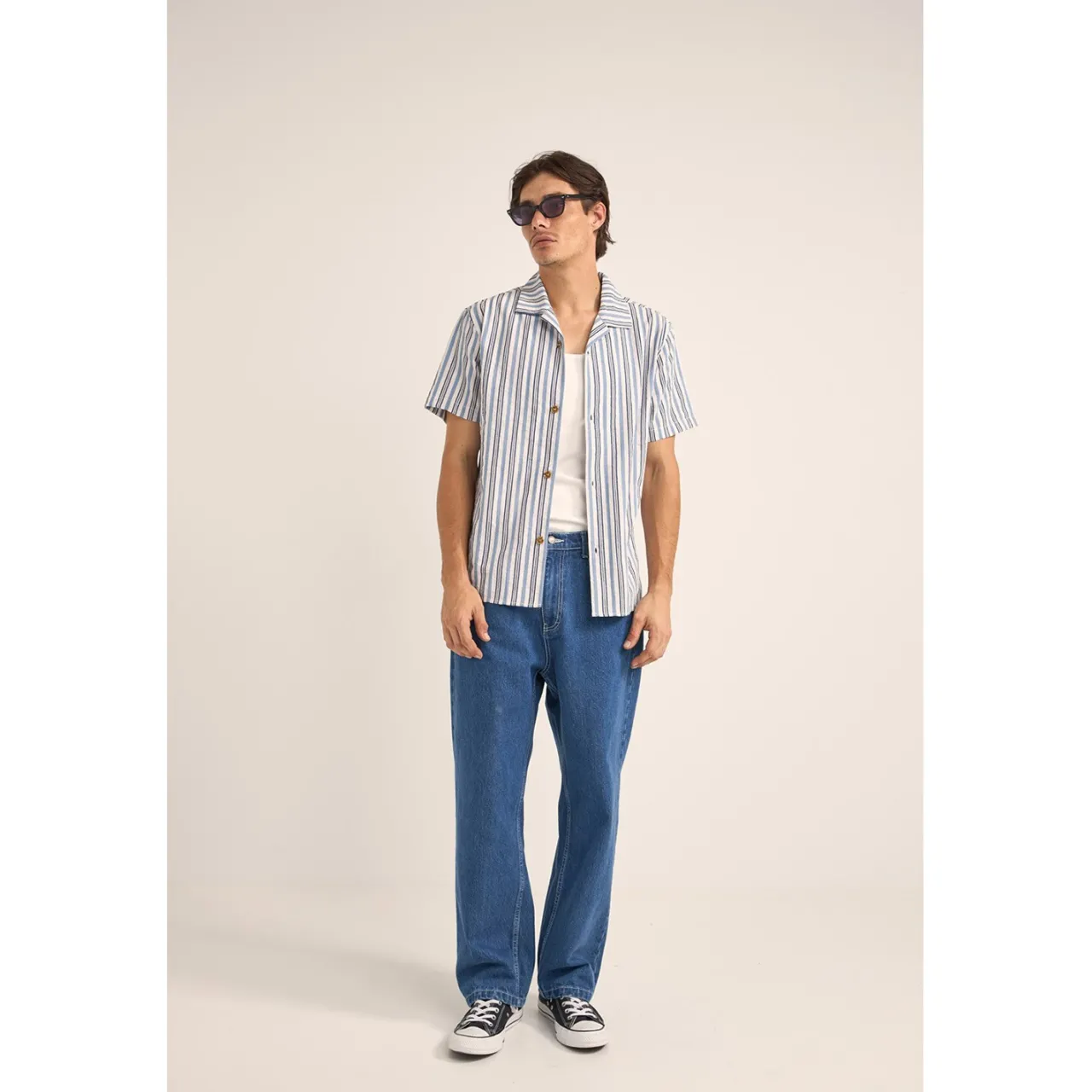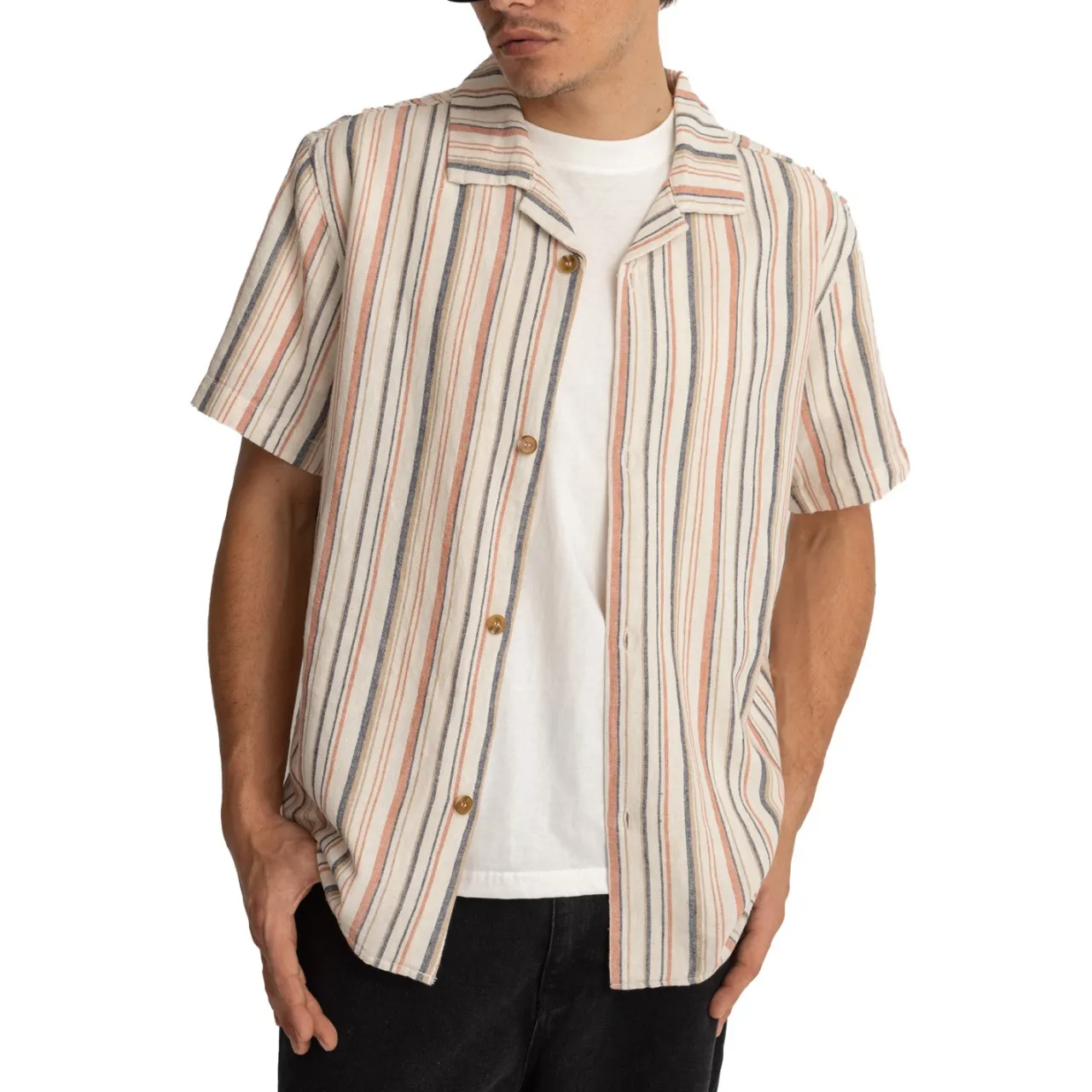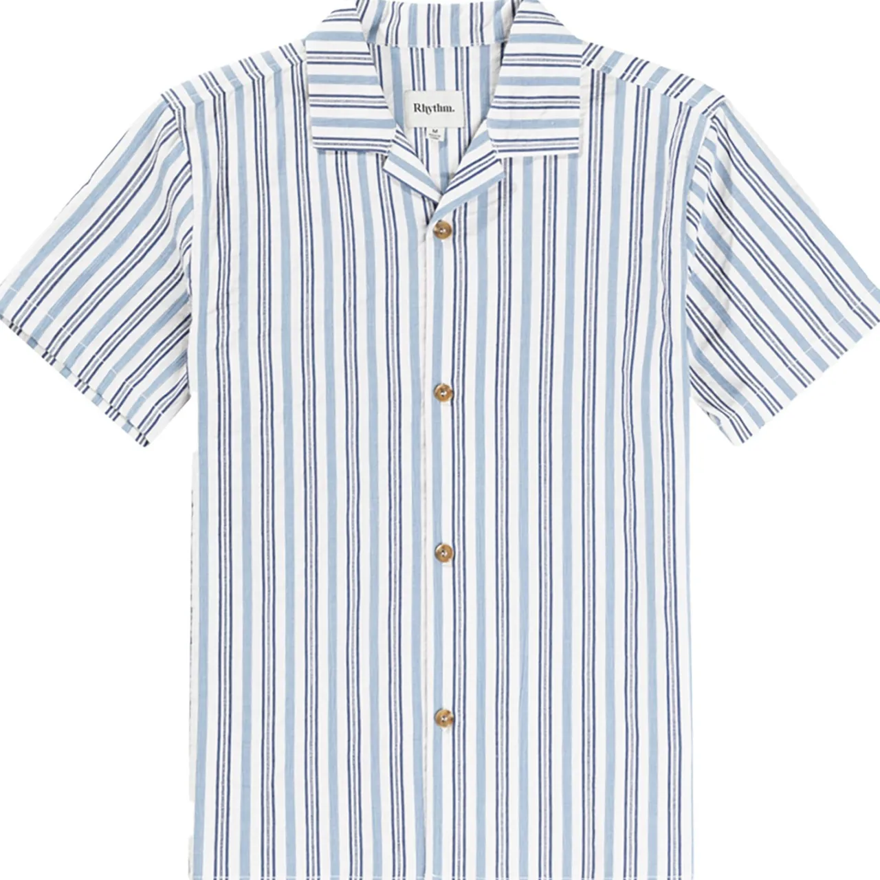 Vacation mode: activate. The Rhythm Vacation Stripe Short-Sleeve Shirt features breathable linen-blend fabric and a button up front that perfectly compliments a little umbrella stuck in your lemonade.