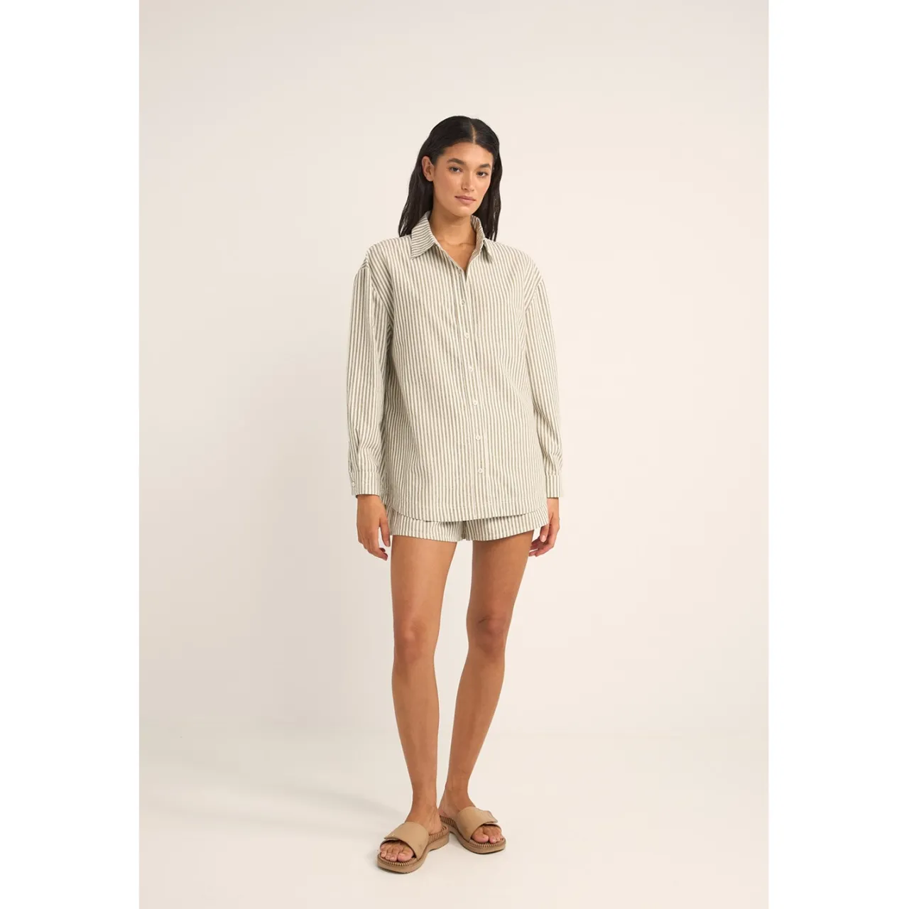 Embrace the effortless cool of the Rhythm Valley Stripe Oversized Shirt. This relaxed-fit shirt features a bold stripe pattern and a comfortable, breathable fabric.