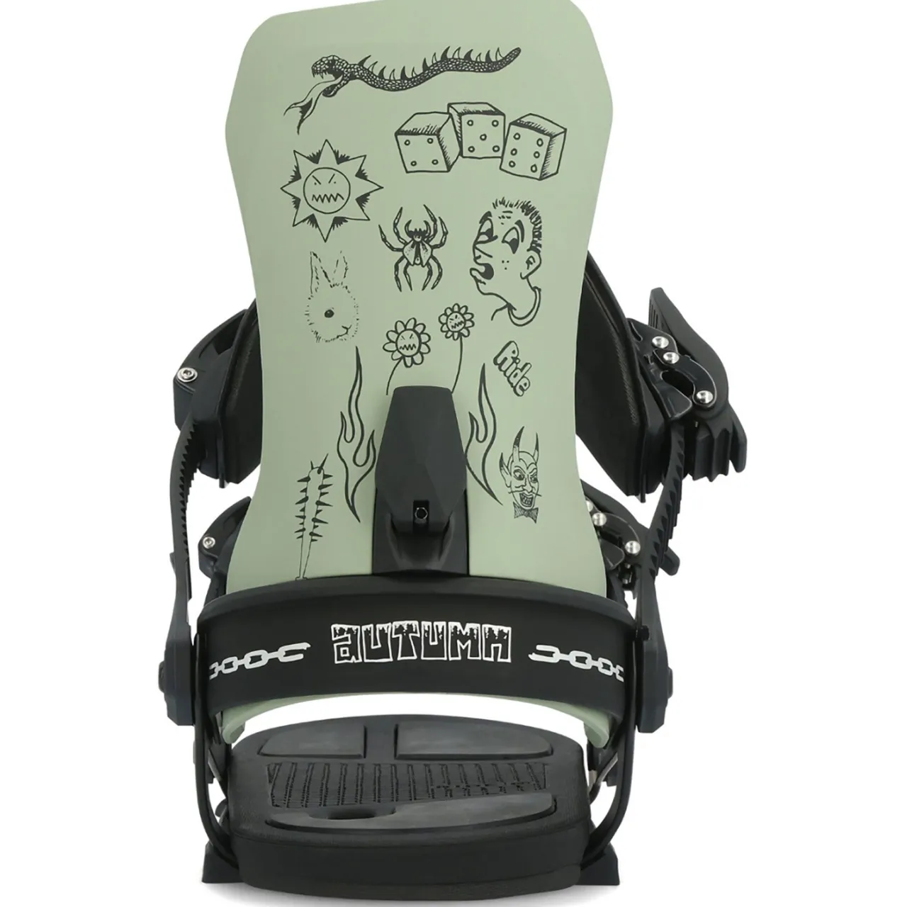 The Ride x Autumn A-9 Snowboard Bindings pair the super responsive A-Series aluminum chassis with a nylon highback for smooth rigidity and great response. A high performance package with a good balance of power and dampness, the A-9 is a great choice for aggressive riders hitting a varied terrain. This model features a rad limited edition graphic by artist Mike Gigliotti. Catch em while you can!