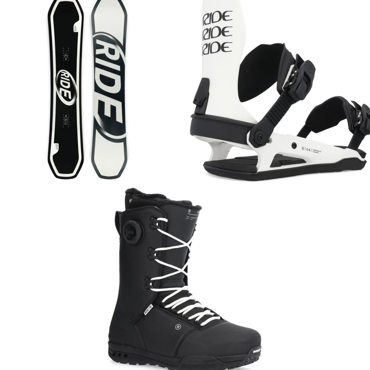 Ride Zero Snowboard + C-6 Snowboard Bindings + Fuse Snowboard Boots 2025- Snowboards, Bindings & Boots|Snowboard Packages