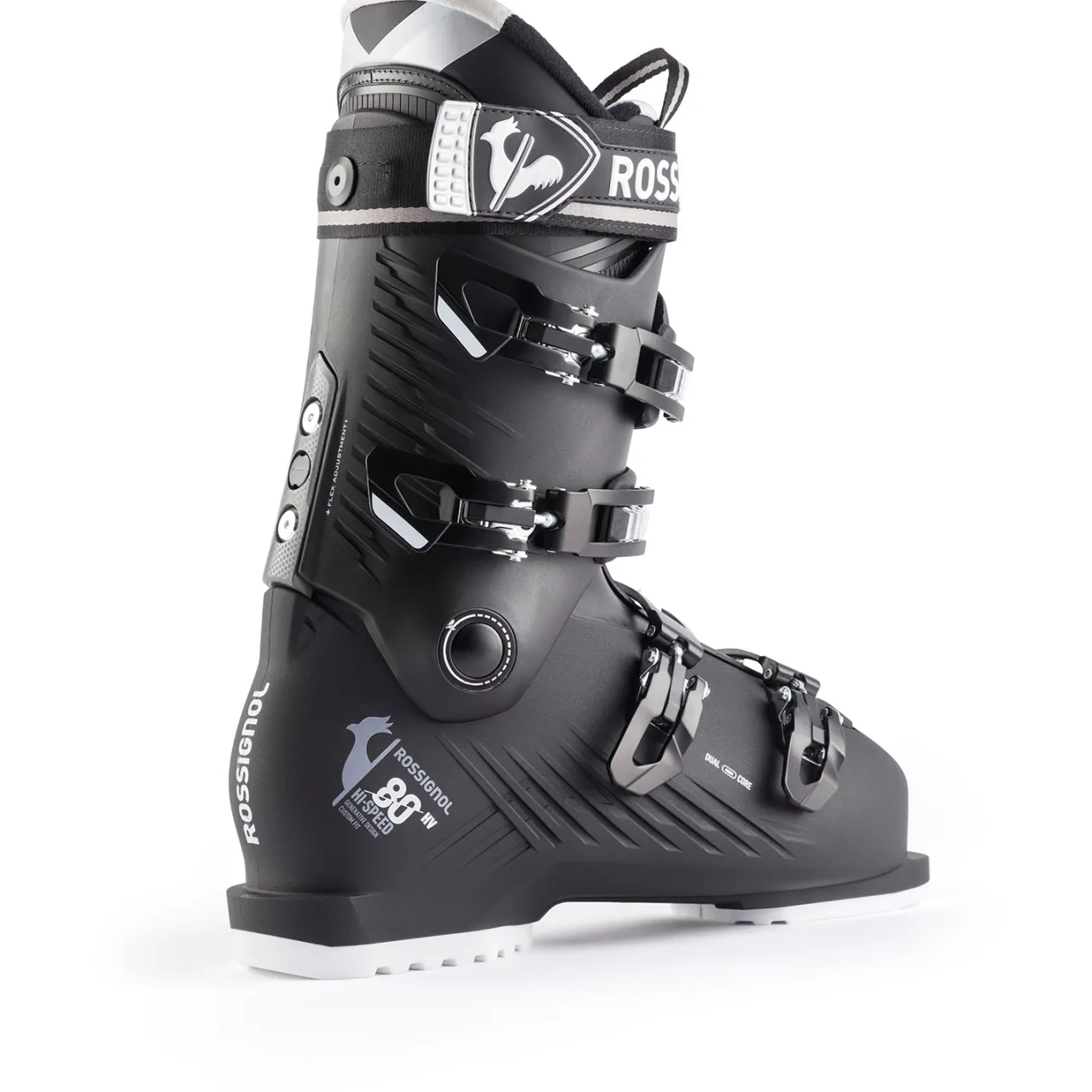 Rossignol’s “On-piste” boot lineup gets a ground-up re-design this season with the introduction of the new Hi-Speed series, and they’re a winner. The Rossignol Hi-Speed 80 HV Ski Boots benefit from a range of changes from forward lean adjustment, flex adjustment, and a new toebox on the liner. Dual Core construction gives the Hi-Speed line the smoothest and most progressive flex in the industry, making the new Hi-Speed boots instant classics.