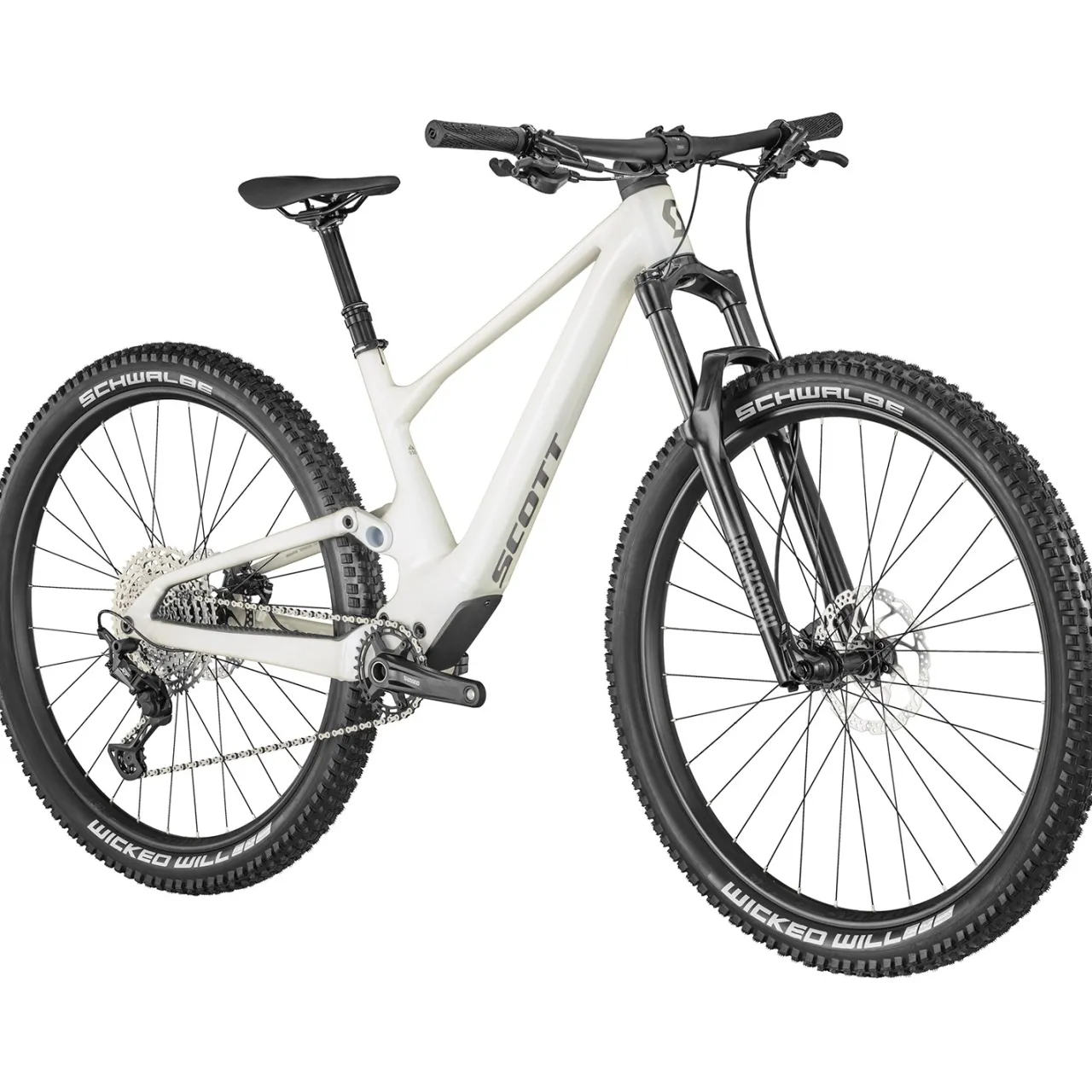 Patented Integrated Suspension System–        This integrated shock platform allows Scott to refine suspension characteristics without adding weight. This design eliminates lateral movements as the shock goes through its compression, making for a more efficient stroke.
