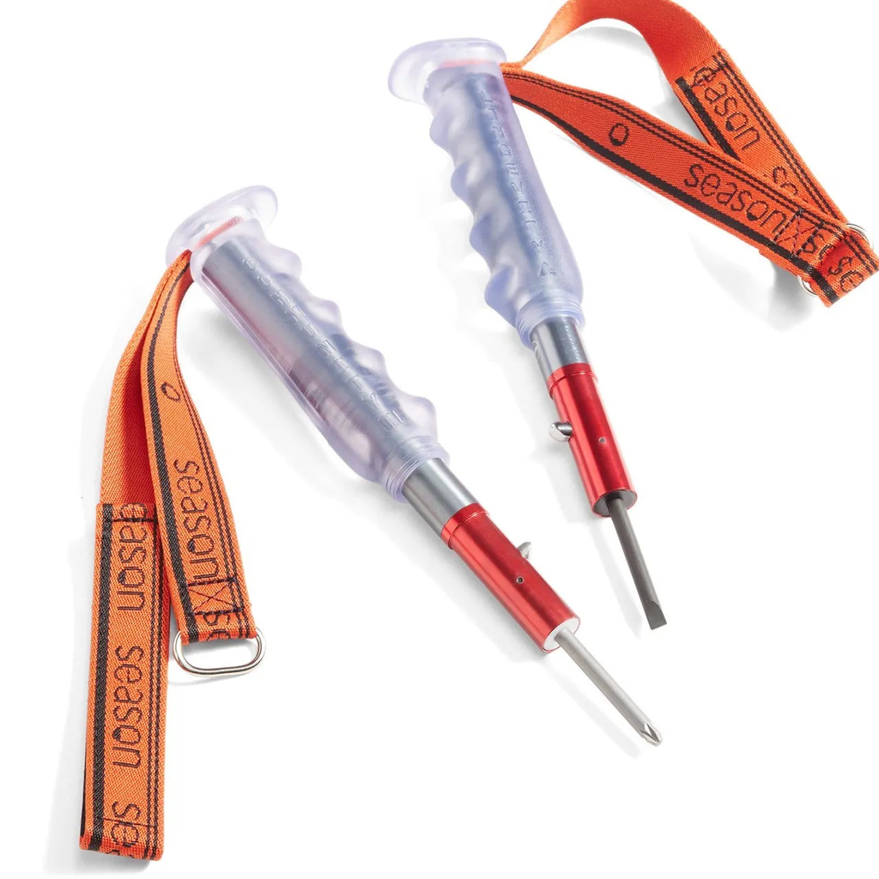 Integrated #3 Philips & Large Flathead Screwdrivers–        Integrated Philips #3 screwdriver in one hand and large flat-head in the other. Push-button release unveils the hidden tools from within the shafts, ddesigned to tighten DIN screws, snowboard bindings, and anything else needing adjustment on the hill