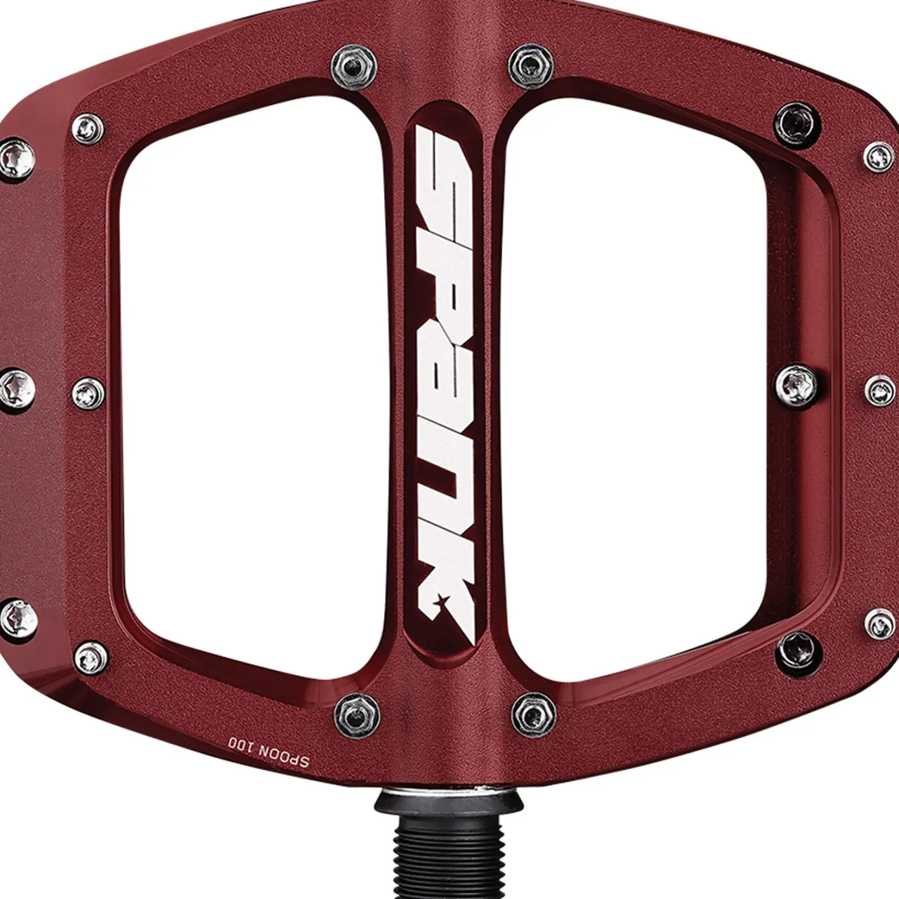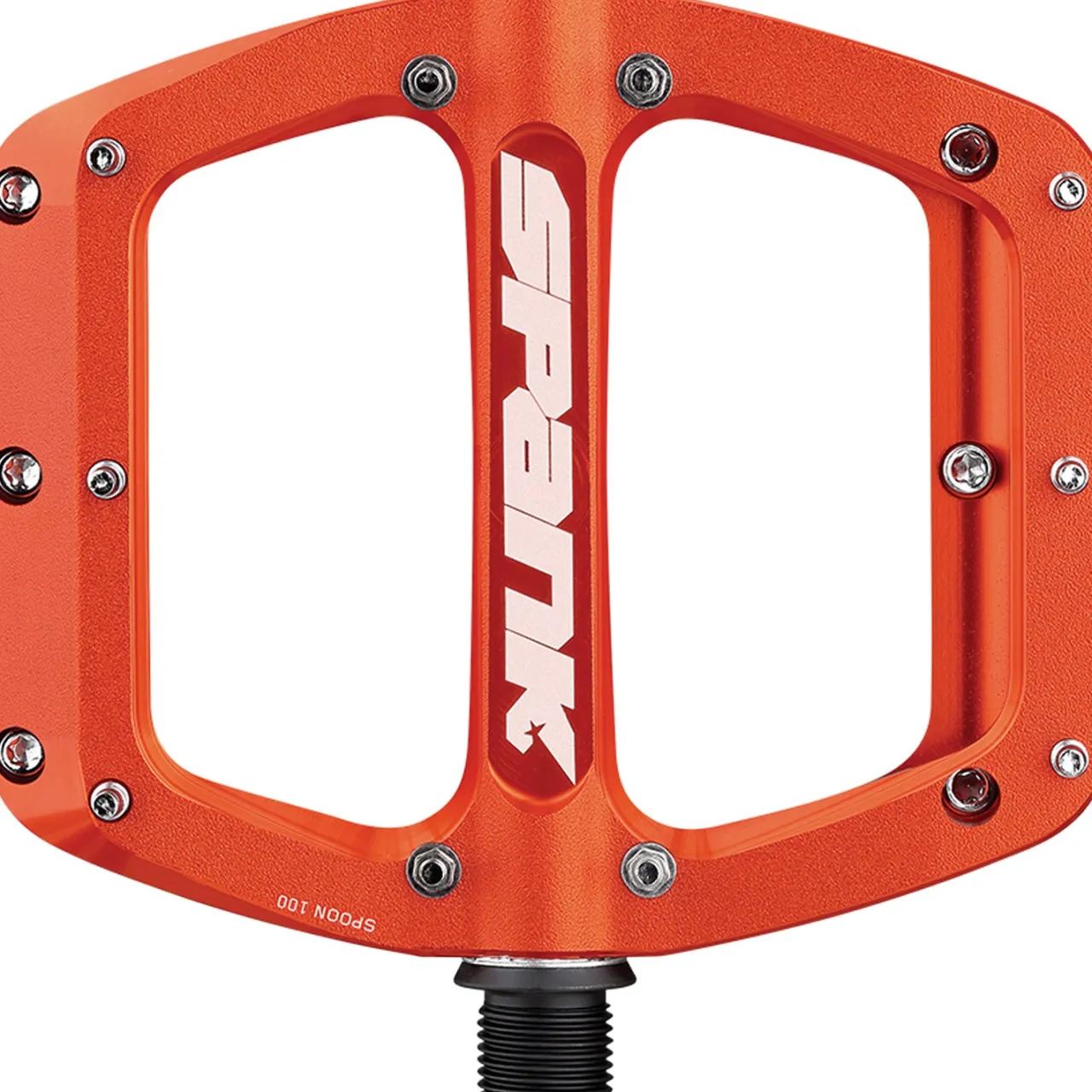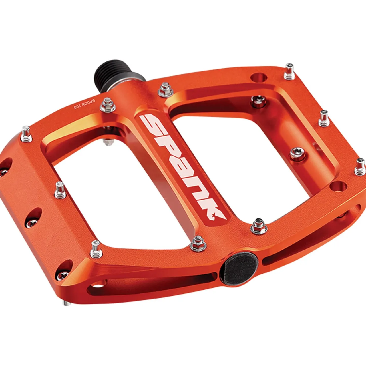 The Spank Spoon 100 Pedals deliver the Goldilocks treatment with their mid-sized platform (ideal for US size 7 – 10 feet) and 20 grip-hungry steel pins nestled into a sweet concave profile. Built with bombproof chromoly axles and a shot-peened finish, these pedals keep you glued to your bike from mellow trails to rowdy descents.
