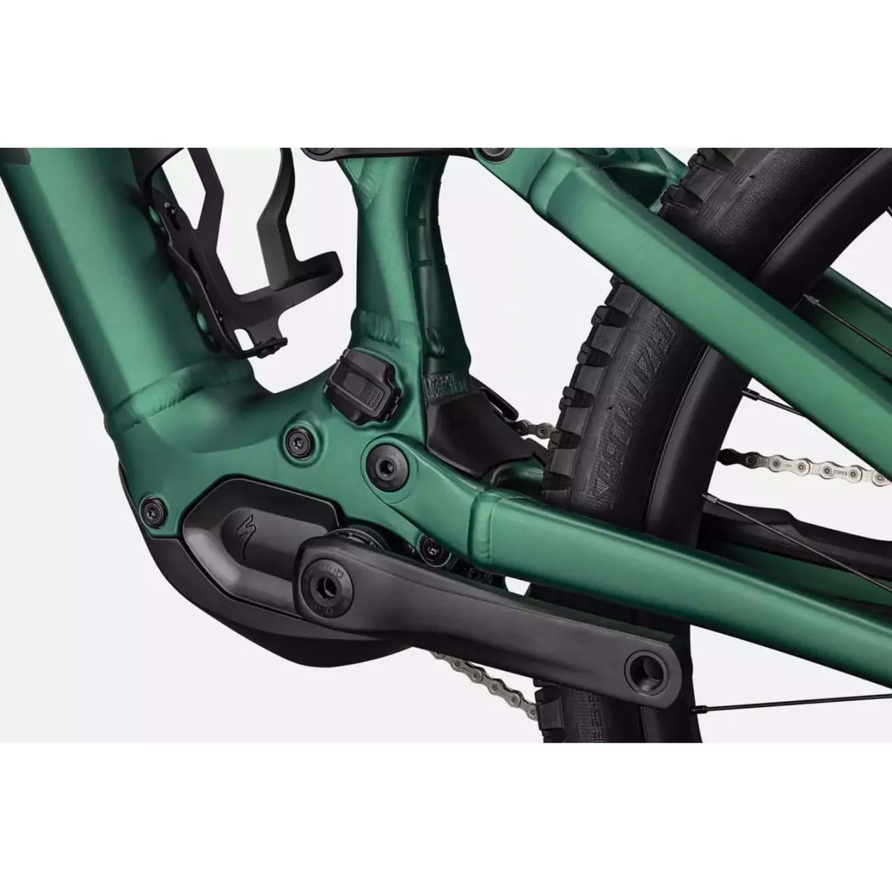 Mixed Wheel Design– A dedicated mixed-wheel size design with a 27.5” wheel in the back and 29” up front delivers a nimble ride that carves circles around other full-power e-MTBs. A generous cockpit centers you on the bike, optimizing traction and corner control. The low bottom bracket, slack headtube angle and reduced fork offset keep things stable in the rough.