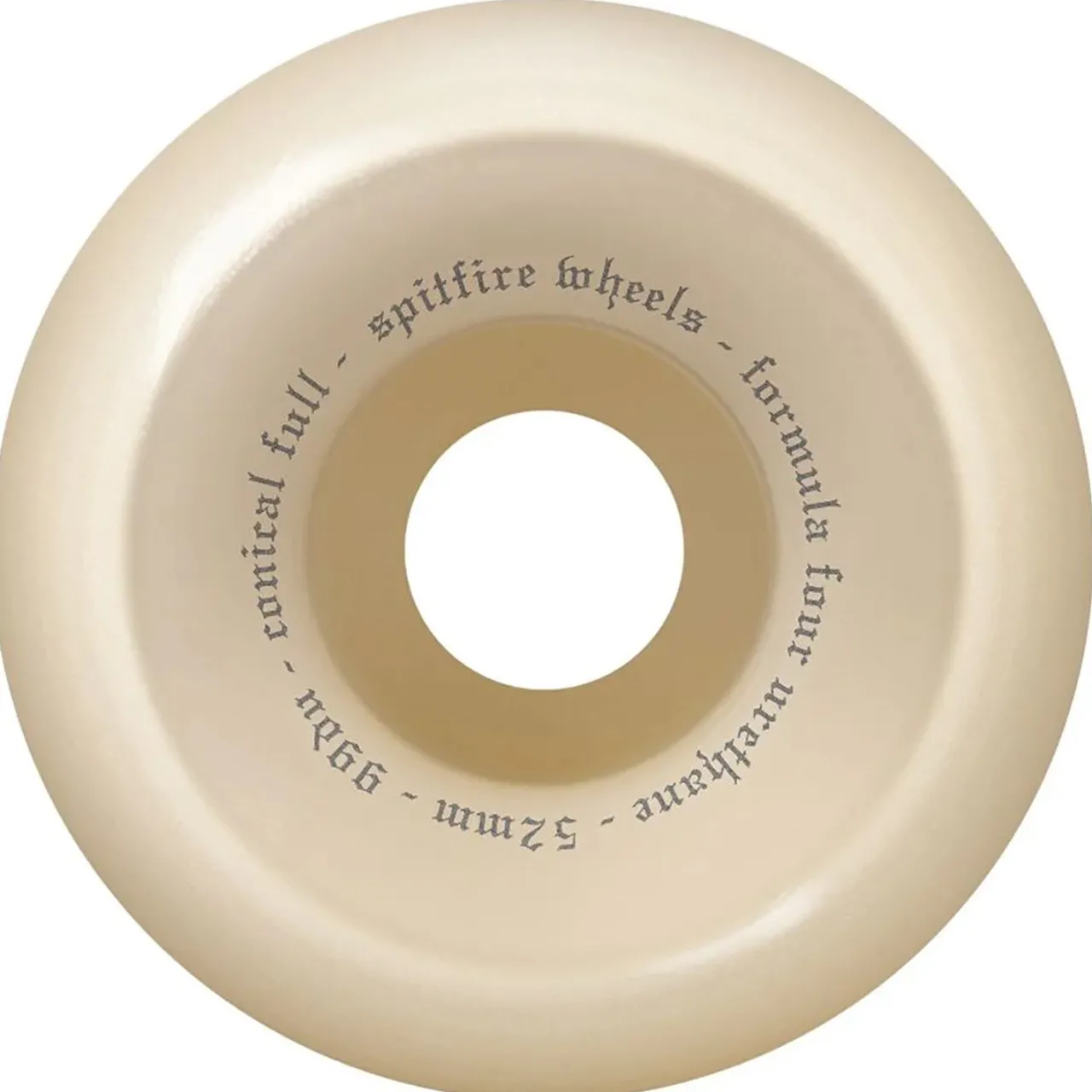 Formula Four Urethane–        Formula Four urethane is unlike any other. Both in the streets and under high-speed stress tests in Spitfire’s lab, Formula Four wheels retained more material, coned less and kept their original shapes and sizes longer than any other wheel.