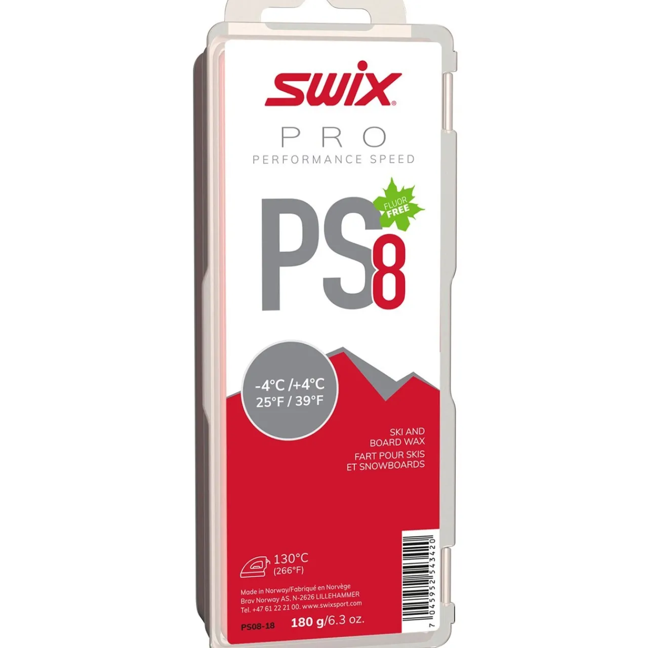 The replacement for the venerable Swix CH8 is no slouch when it comes to glide in temperatures from -4˚C to +4˚C (25˚F to 39˚F) and is pretty much the default for the Pacific Northwest. For best results, iron SWIX PS8 Red onto clean and dry bases, scrape thoroughly, and brush to reveal the base structure.
