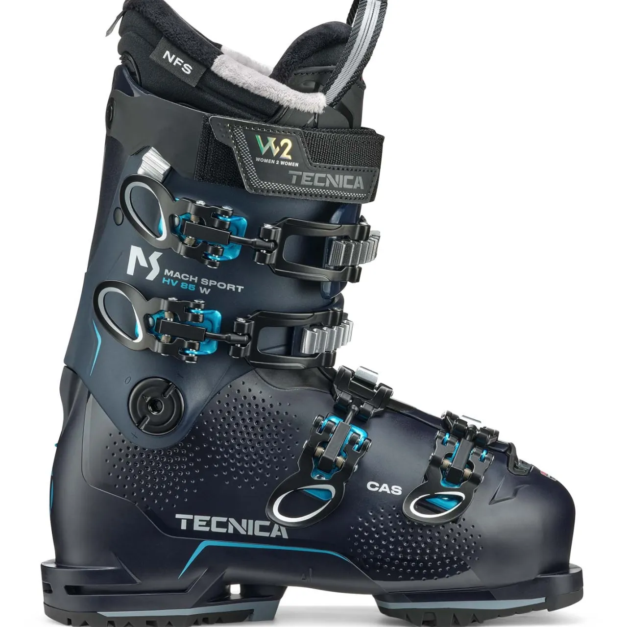 Wide feet and big calves? Tecnica feels your pain and addresses the issue with the Tecnica Mach Sport HV 85 W Ski Boots. With a roomy 103mm last and a cuff that’s adjustable for more girth, the Mach Sport HV 85 lets you lay down sweet turns without even thinking about foot pain.