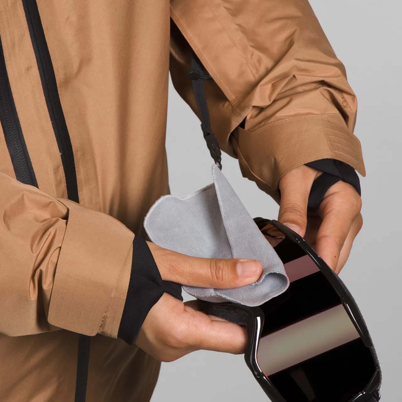 Covered, Secure Zip Wrist Pocket with Goggle Wipe