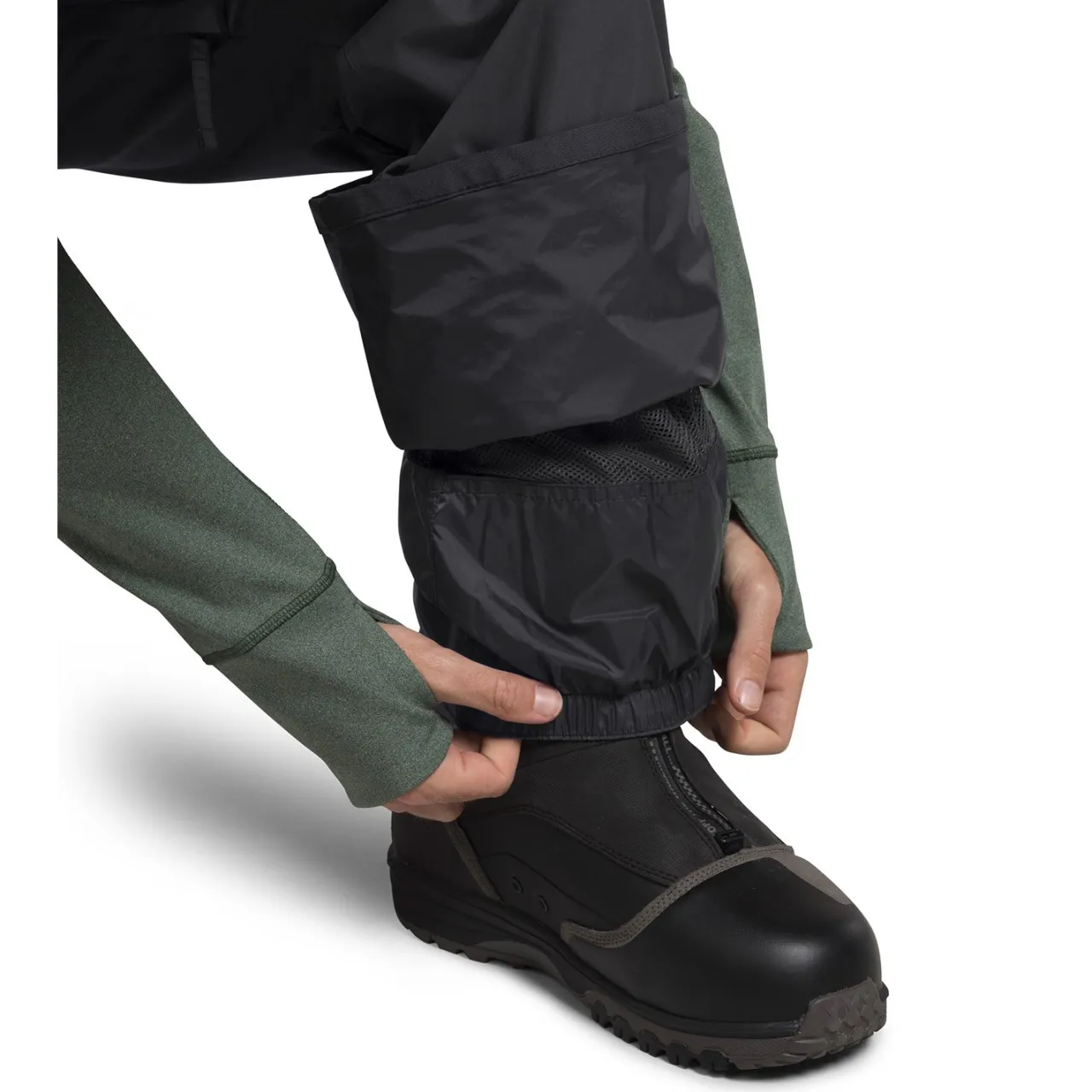 Chimney Venting™ System–        Chimney Venting™ system with mesh-lined inner-thigh vents and mesh gaiter panels for temperature regulation.