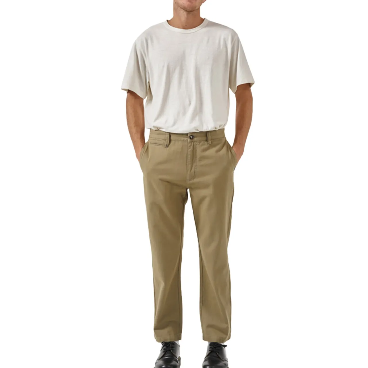 Crafted from eco-friendly organic cotton twill, the Thrills Minimal Thrill Work Chinos are as comfortable as they are durable. With a tailored, tapered fit, belt loop, and functional pockets, these chinos redefine professional polish – and the wrinkle-free fabric ensures you stay sharp from boardroom to after-hours festivities.