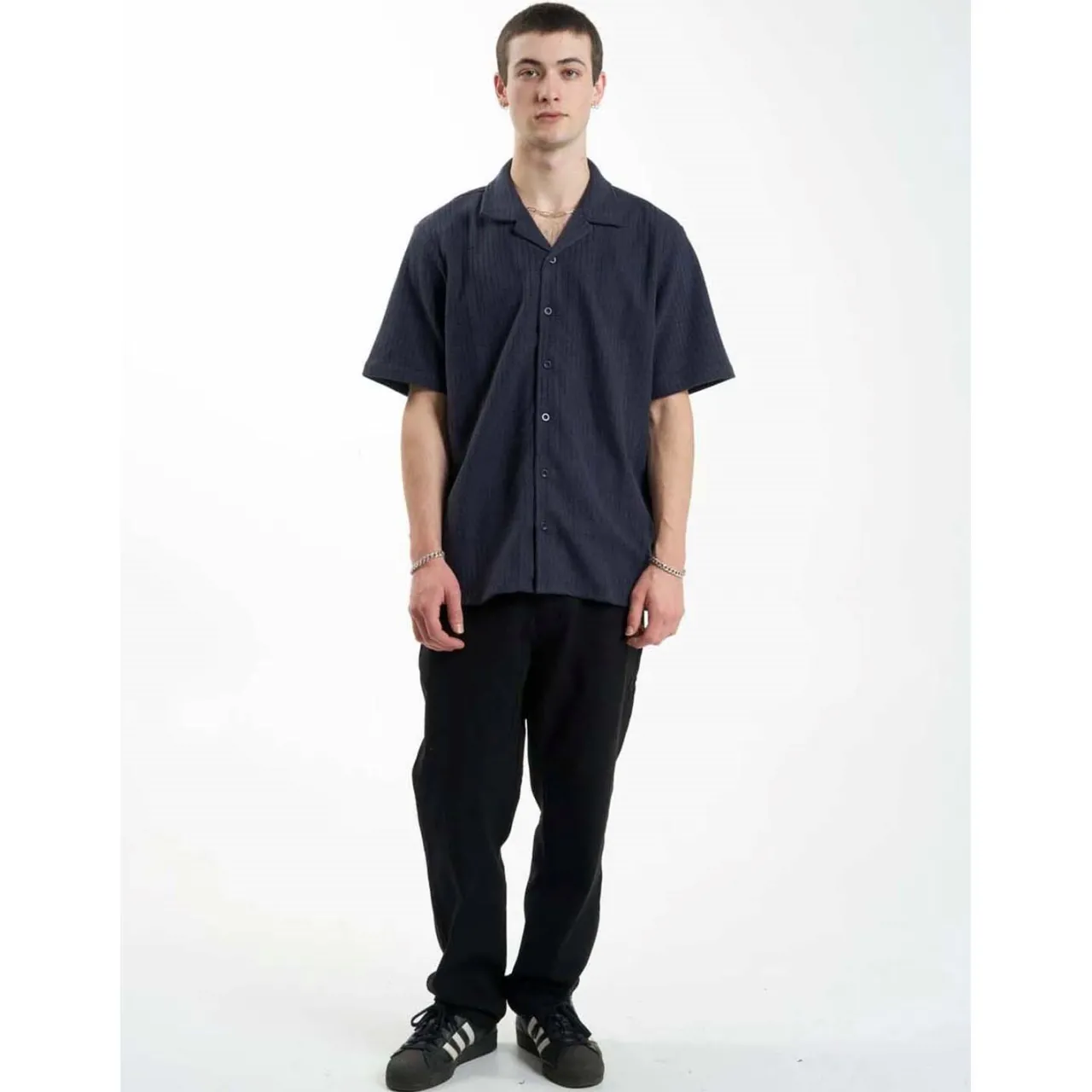 Retro vibes only. The Thrills Though Shall Not Bowling Shirt features organic cotton and a straight cut, for a versatile fit that’s at home inside and out of the alley.