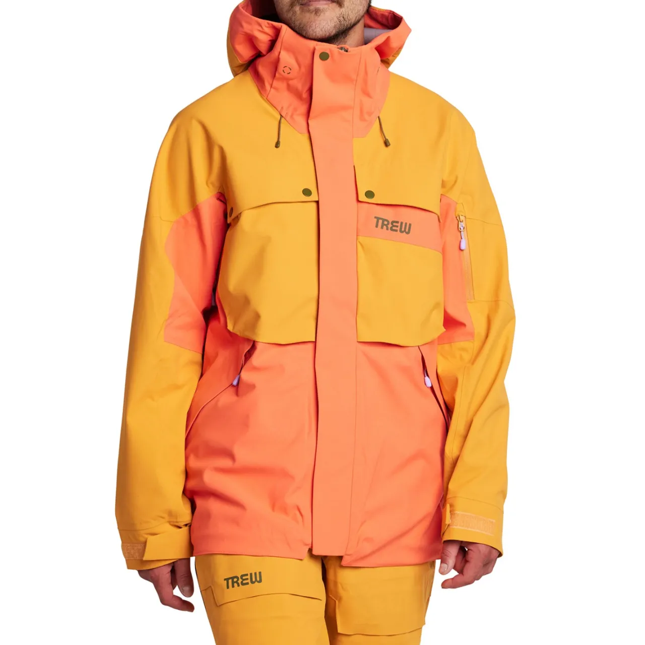 Primo Fabric–        Sustainably built with less impact, but still packed with the waterproofing, breathability, and durability that you want and need for long days in the mountains. The woven face fabric takes 100% recycled nylon (GRS certified) and constructs it into an ultra-durable oxford weave with a slight mechanical stretch. The final product is Trew’s most durable, comfortable, and sustainable outerwear.