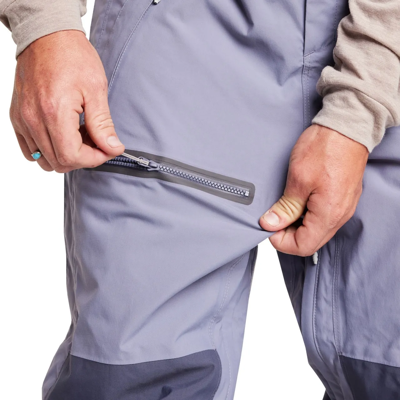 PNW 2-Layer Fabric (200D x 320D Heavy Duty 100% Nylon Oxford Weave)–        Trew builds the PNW Originals collection with a heavy-duty fabric laminated to a durable polyurethane waterproof/breathable membrane. The woven fabric is constructed in an Oxford weave – similar to a canvas work pant – with heavy-gauge 200 denier by 320 denier nylon yarns. New this season, this waterproof and breathable fabric is now rated at 20,000mm waterproof and 20,000gr/m² breathable. The final package is a 2-layer fabric engineered to keep you dry, comfortable, and well-protected against wear and tear.