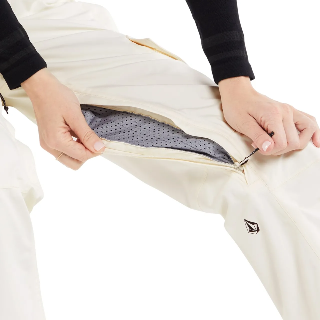 Specialty Ticket Ring–        Inspired by the buckle button closure on Volcom Brand Jeans, this feature lets you securely attach your lift ticket to your pants.