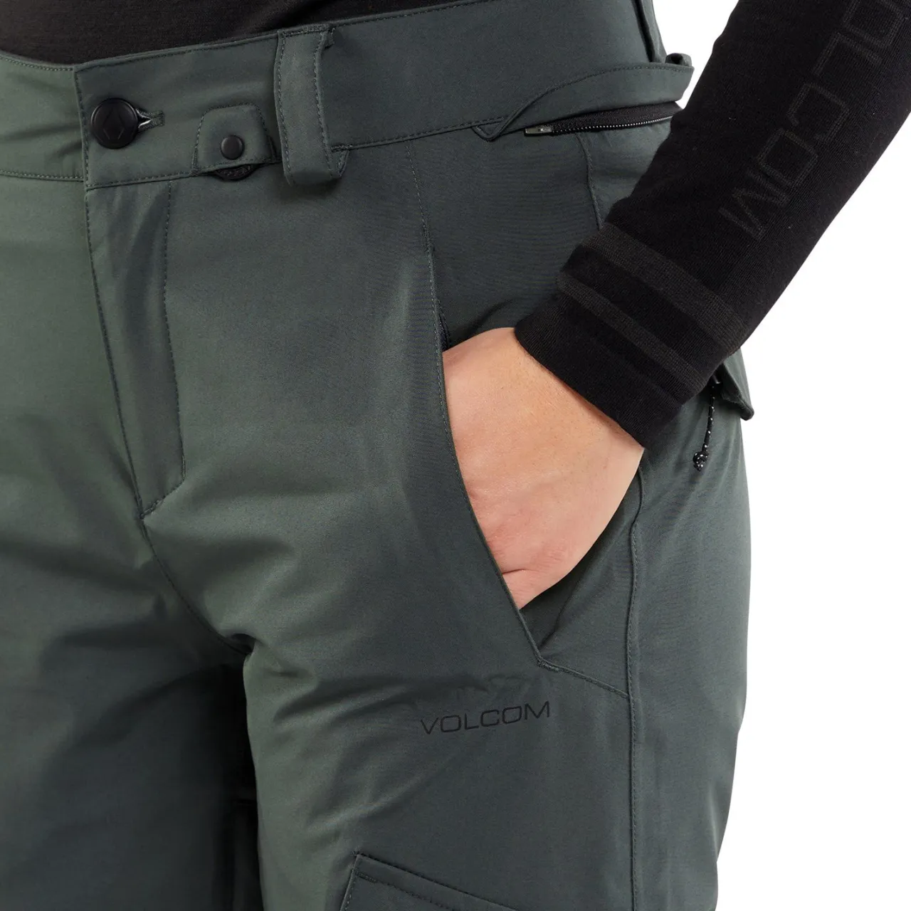 Zip Tech® Jacket to Pant Interface–        Whether waist deep in the backcountry or trying to one-up yourself in the park, nothing lowers motivation faster than snow jammed down your pants and up the back of your jacket. Volcom has officially patented Zip Tech®, their originally designed and heavily imitated jacket-to-pant interface that allows you to zip the powder skirt of virtually any Volcom jacket to any Volcom pant, keeping snow out and heat in with no restriction of movement. Falling has never been more enjoyable.
