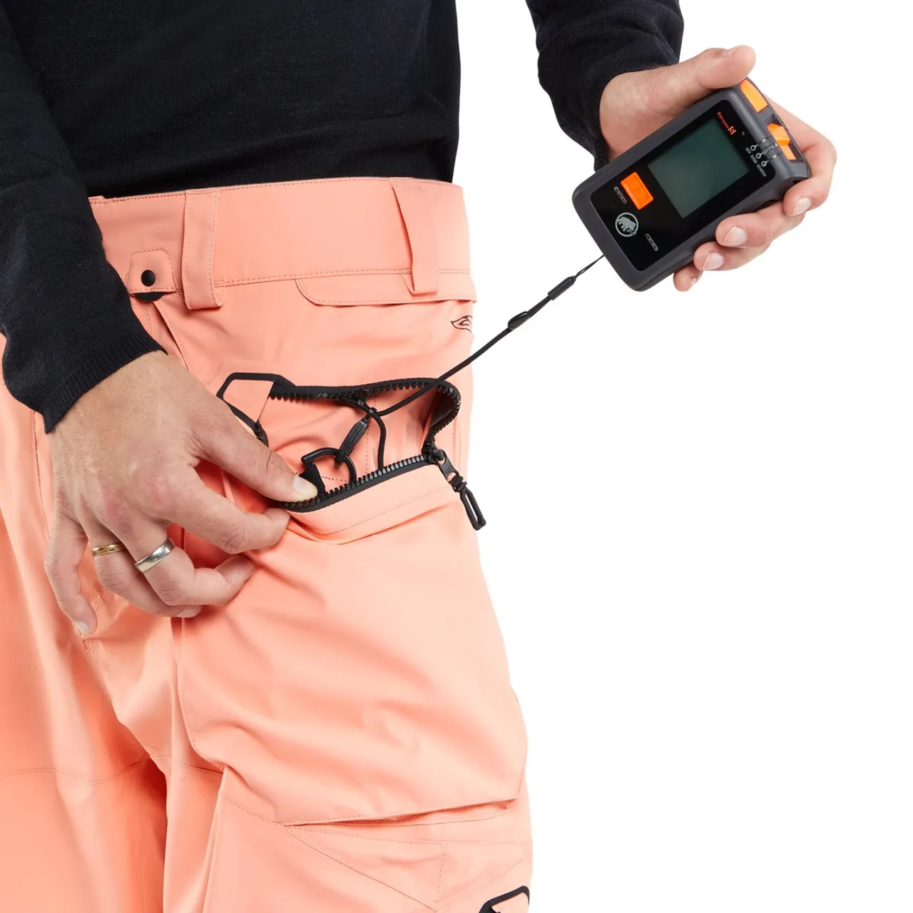 Specialty Ticket Ring–        Inspired by the buckle button closure on Volcom Brand Jeans, securely attach your lift ticket wicket to your pants. Located on the front waistband.