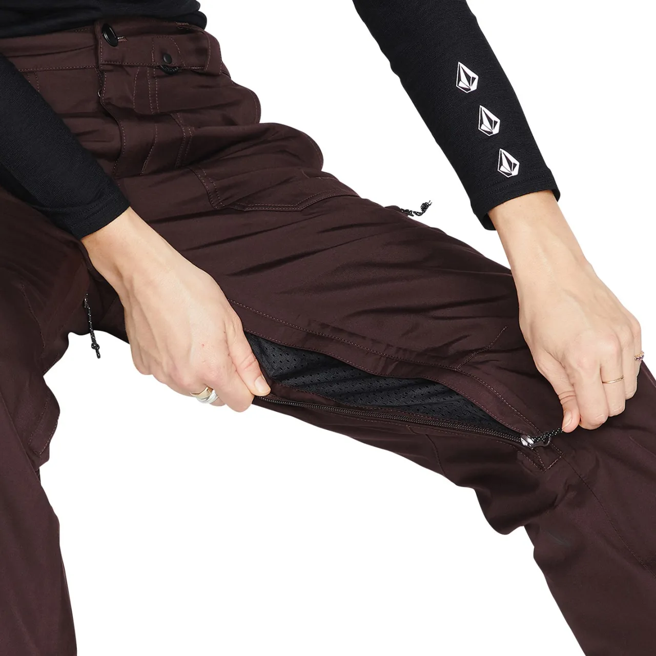 Zip Tech® Jacket to Pant Interface–        Whether waist deep in the backcountry or trying to one-up yourself in the park, nothing lowers motivation faster than snow jammed down your pants and up the back of your jacket. Volcom has officially patented Zip Tech®, their originally designed and heavily immitated jacket-to-pant interface that allows you to zip the powder skirt of virtually any Volcom jacket to any Volcom pant, keeping snow out and heat in with no restriction of movement. Falling has never been more enjoyable.