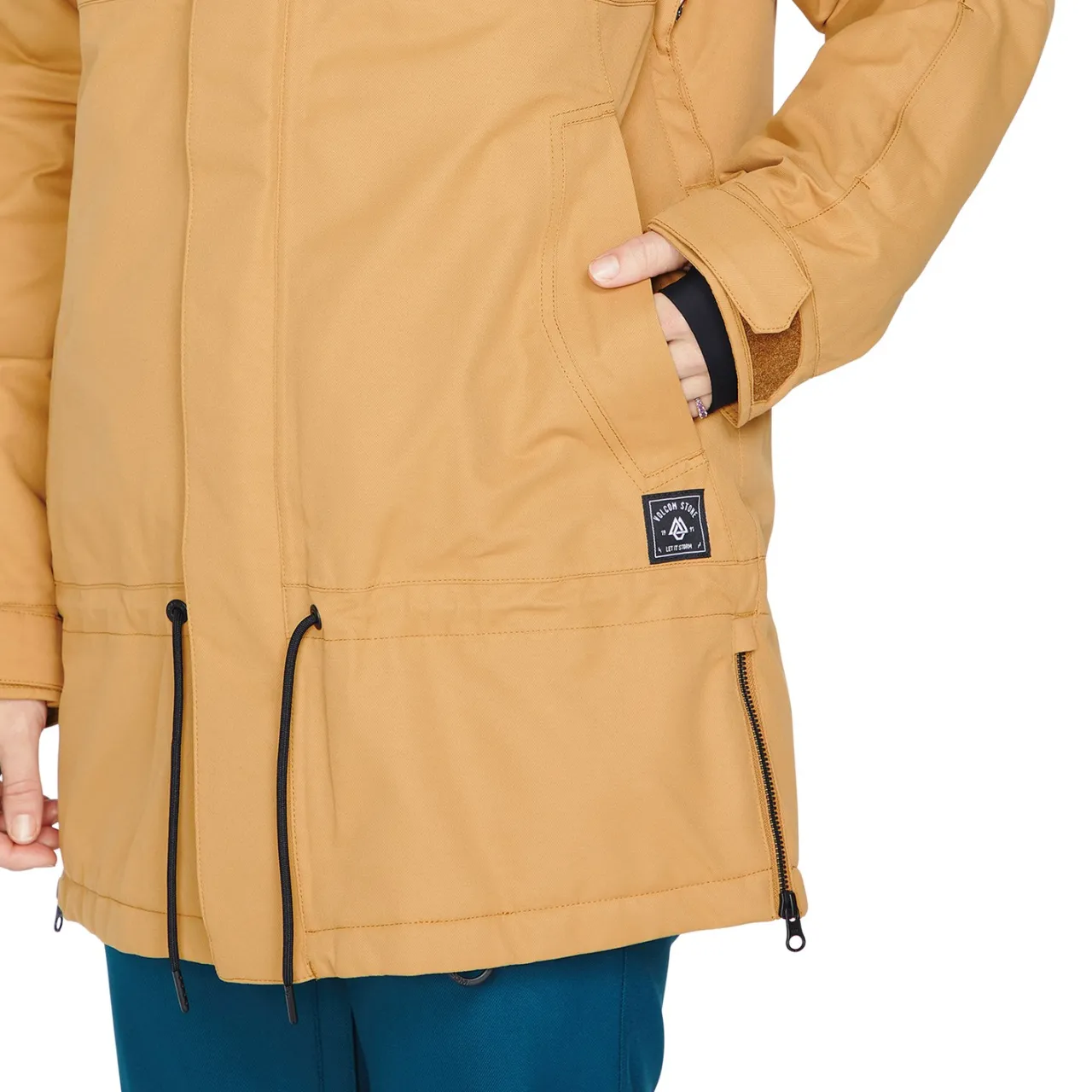 Pocket Access Hem Cinch–        No excess cinch cord hanging from your jacket. The end of the adjustable waist cord is now hidden in the base of the jacket pockets.