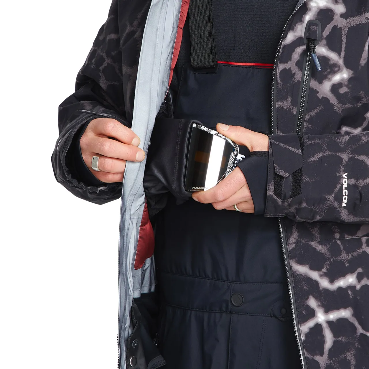 Stretch Adjustable Powder Skirt–        Designed to keep snow from going up inside of your jacket. Volcom added stretch to their powder skirt for maximum comfort and mobility.