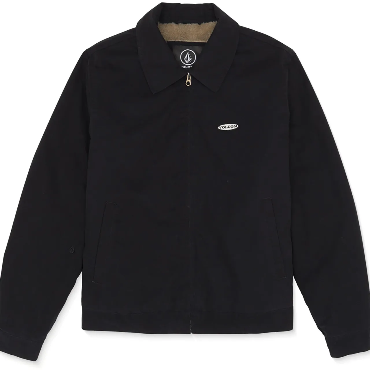 Hand Pockets Lined With Faux Fur, Inside Pocket, Volcom Patch at Chest, Stone Embroidery at Sleeve